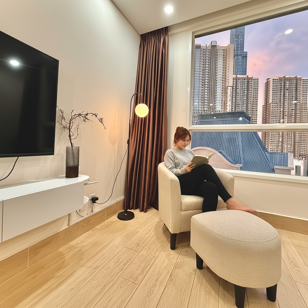 Upptäck Saigons landmärkesområde – hem för Vietnams högsta torn, livliga gator och en 14 hektar stor flodpark perfekt för picknick, foton och familjenöjen. Njut av gatukök, lokala kaféer, exklusiv shopping och snabb tillgång till stadens främsta sevärdheter. Obs: Foton är endast för referens; din lägenhet kommer att vara i Vinhomes Landmark-området och uppfylla samma höga standarder för renlighet och bekvämligheter.