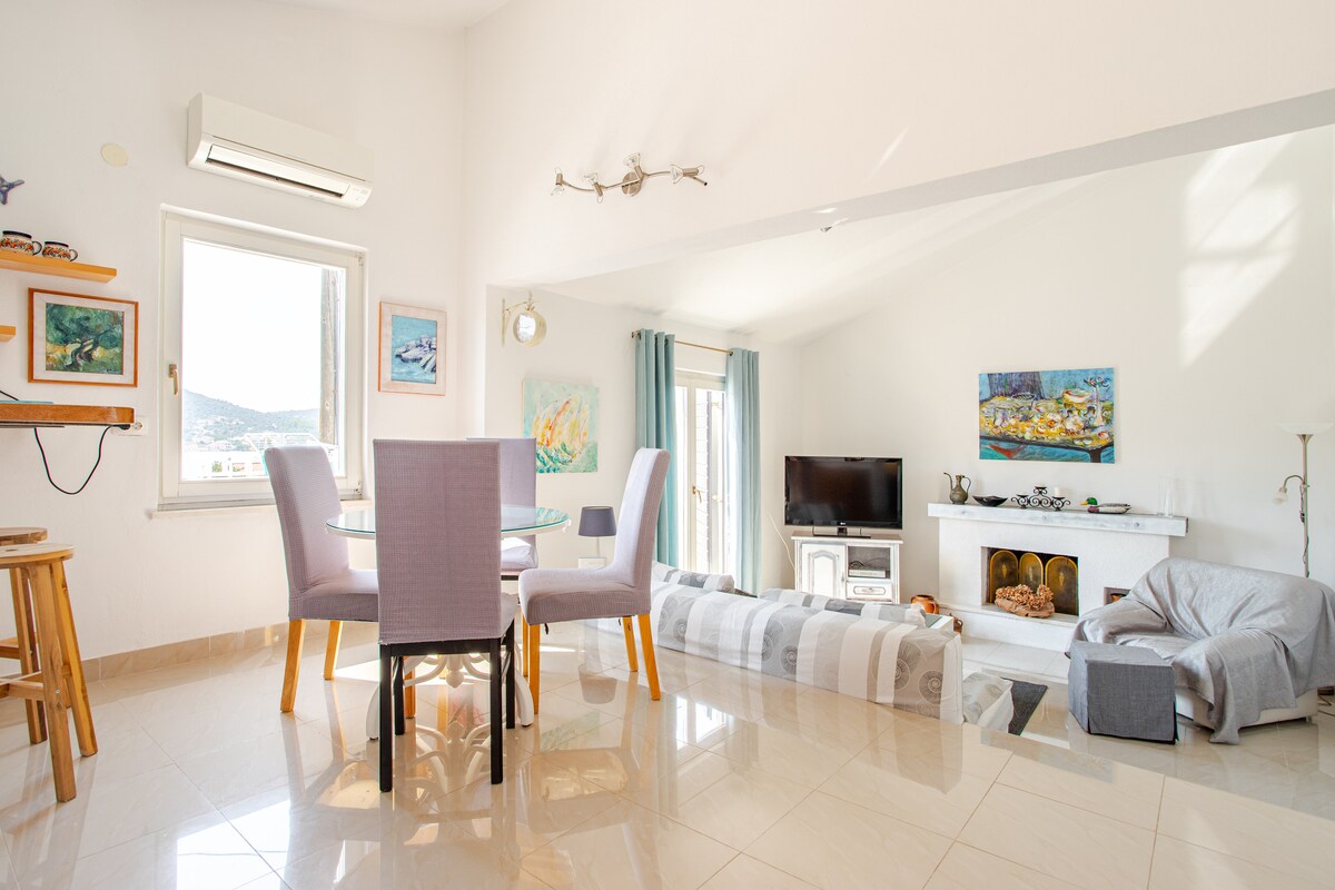 Bekvämt och ett ljust utrymme med en stor terrass med en vacker utsikt över stadens hamn. Lägenheten ligger i den lugna delen av Jelsa, men verkligen nära centrum. Stor sandstrand ligger bara 5 minuters promenad från lägenheten. Du kan också bada bokstavligen framför lägenheten, på den lilla bryggan. Marknaden ligger 5 minuters promenad, samma som det stora torget.