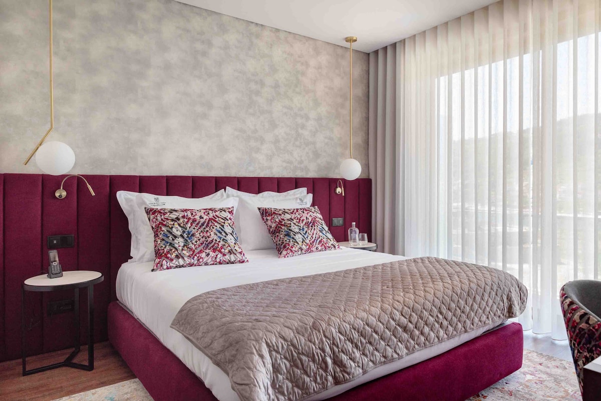 Detta eleganta rum har utformats för att erbjuda en bekväm och avkopplande vistelse i en lugn miljö full av naturligt ljus. Den moderna och harmoniska inredningen skapar ett mysigt boende, perfekt för dem som söker vila och välbefinnande under sin resa.