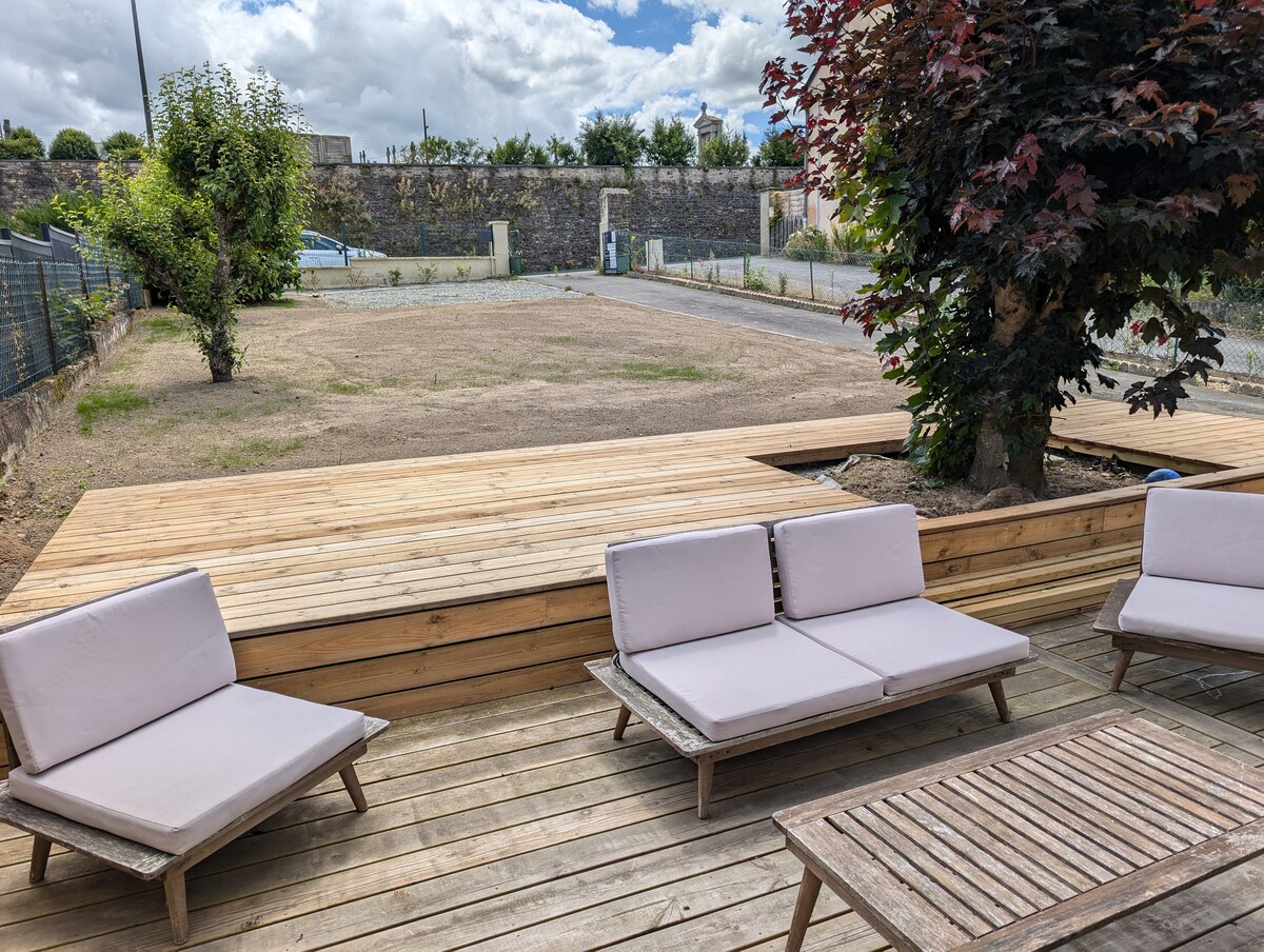 Kom och upptäck Chateaugiron, tillbringa en helg eller längre. Boende för upp till 6 personer. Med en yta på 68 m2, med: - På bottenvåningen: ett vardagsrum matsal och utrustat kök Boendet har en pelletspis som vi hanterar på distans. På övervåningen: separat toalett, duschrum, 2 sovrum: en på 13 m2 med 2 enkelsängar på 90 som kan samlas i en dubbelsäng. och den andra på 17 m2 med 1 säng 140 + 2 enkelsängar på 90. - Exteriör: terrass på 15 m2. Rökning förbjuden.