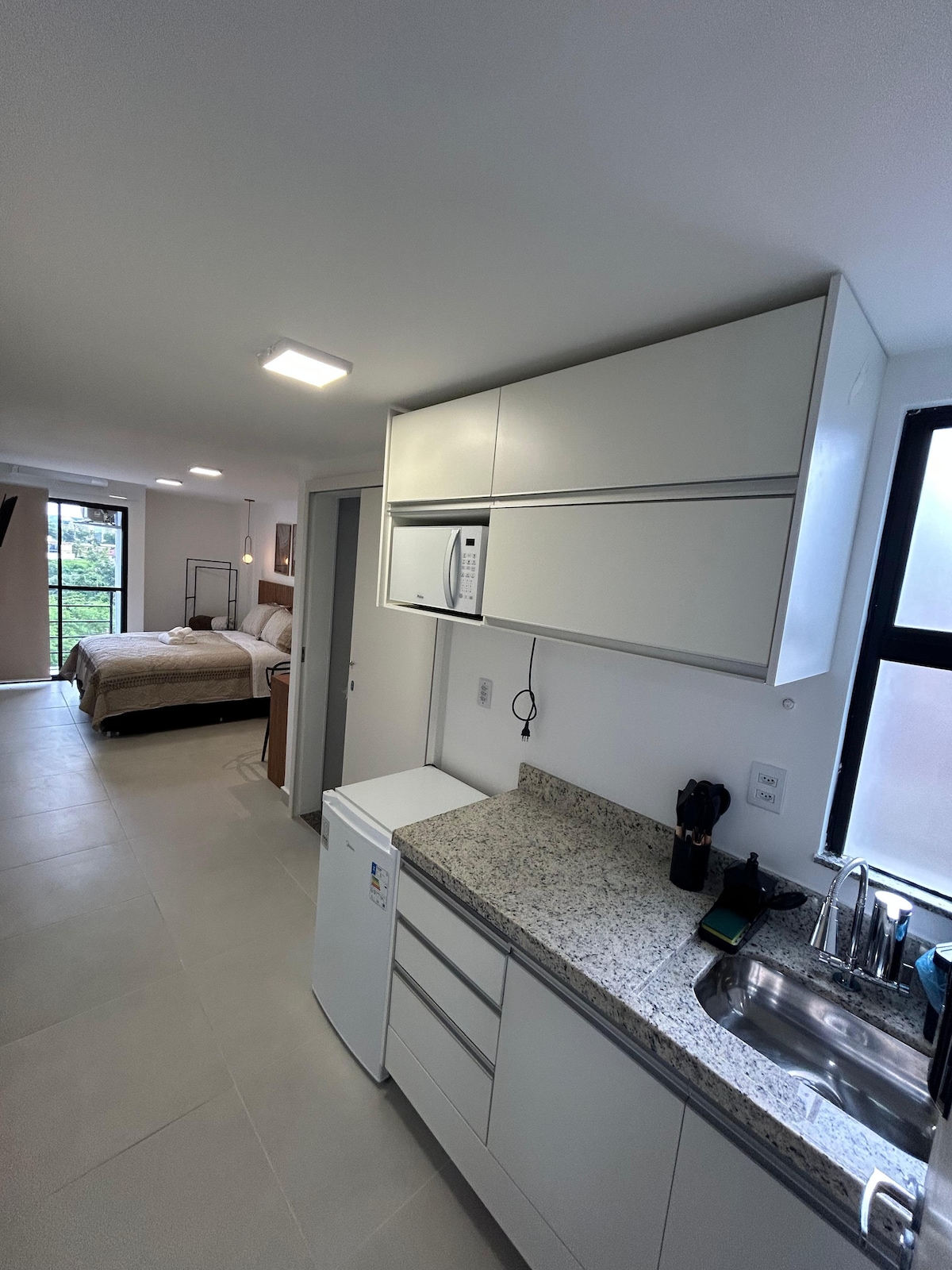 Komplett och mysig studio i Volta Redonda. Njut av denna moderna studio med en vacker utsikt, i ett lugnt område, bara några minuter från Unimed Hospital och South Park köpcentrum. Utrustad med luftkonditionering, Wi-Fi, fullt utrustat kök, dubbelsäng och bäddsoffa, rymmer utrymmet upp till 3 personer i all komfort. Perfekt för dem som söker funktionalitet och ett strategiskt läge, oavsett om det gäller arbete eller fritid.