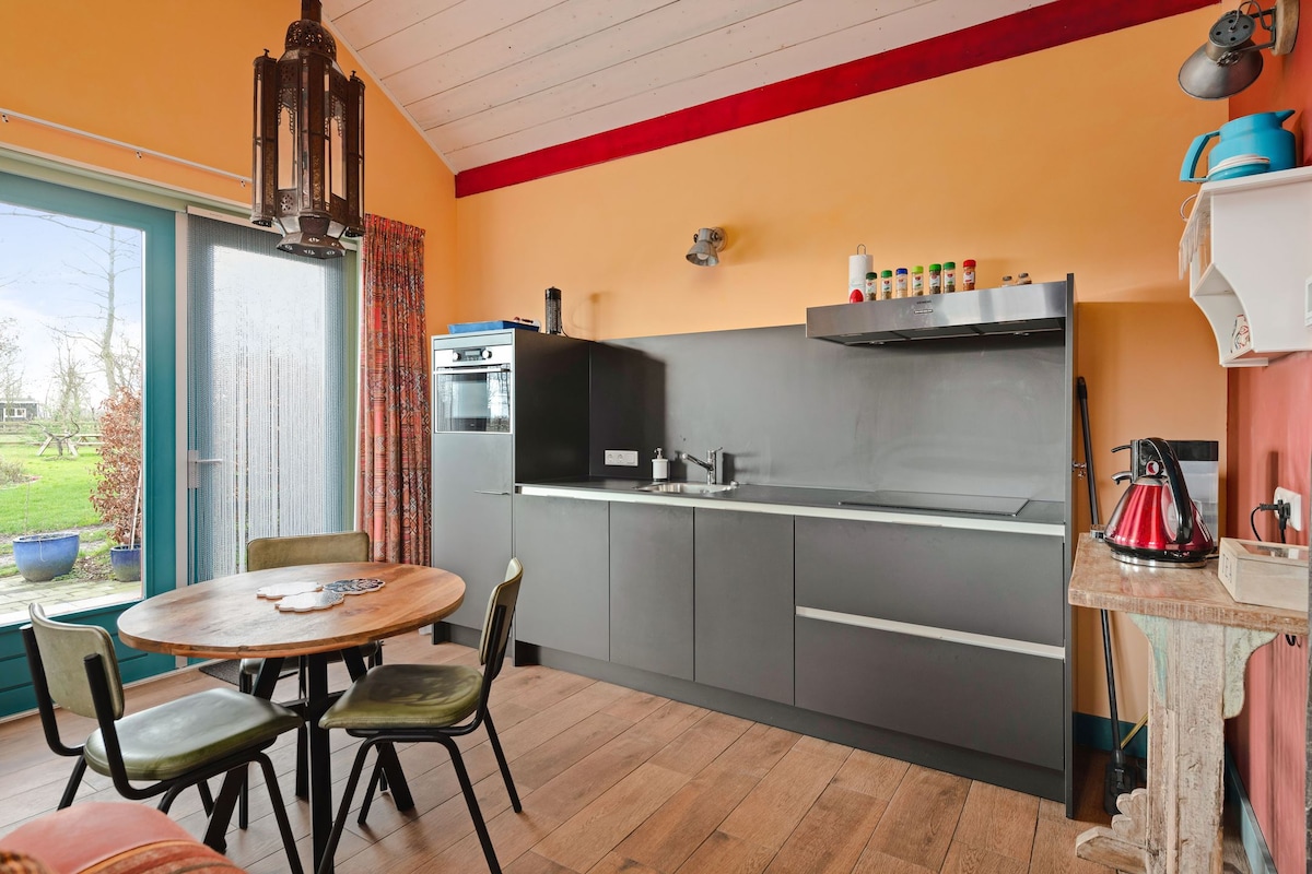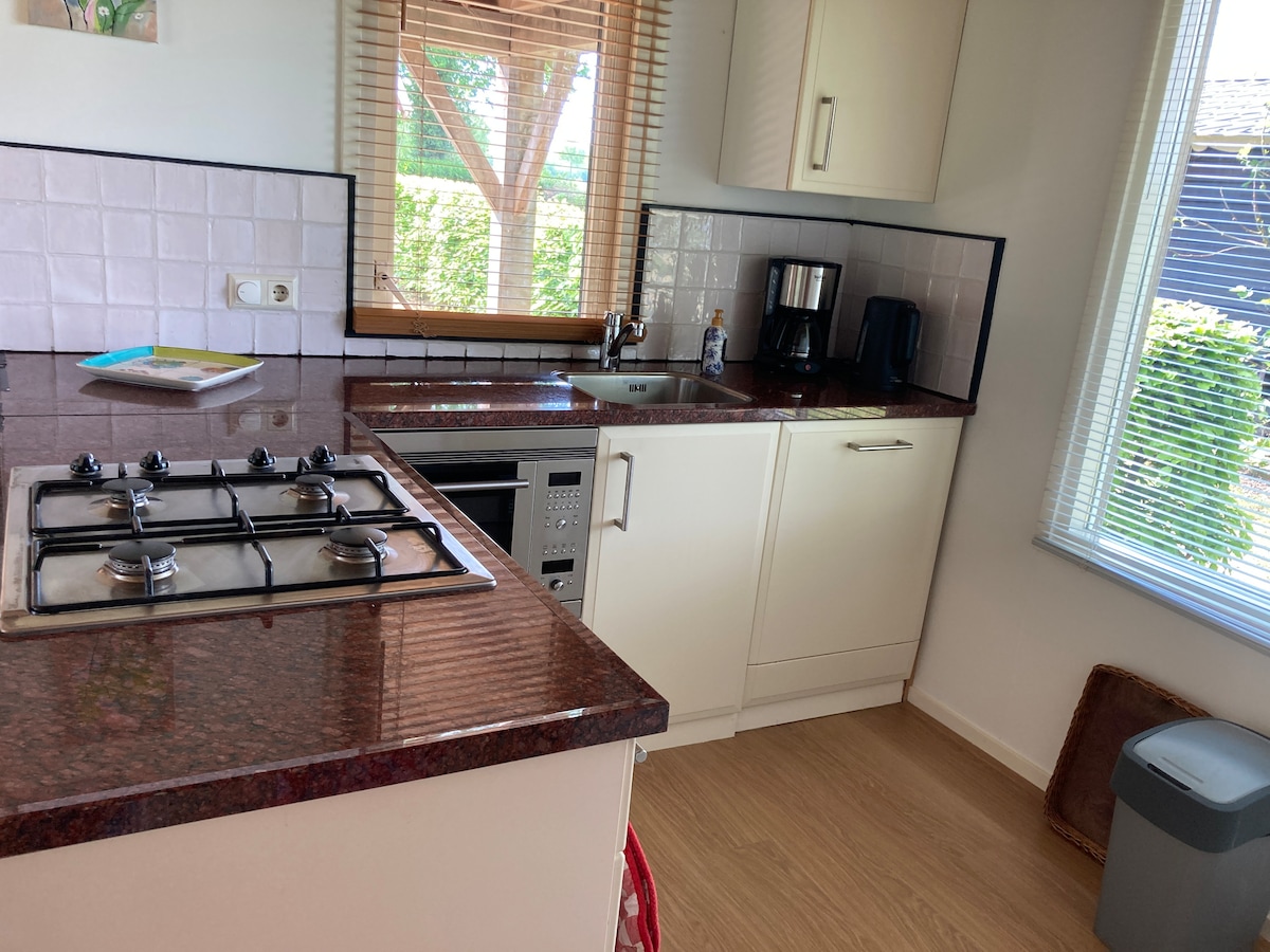 Koppla av i vår vackra wellnessstuga "Weidezicht". Stugan är helt privat. Se rådjur, ängsfåglar,harar eller kungsfiskare. Tryck på cykel för de vackraste cykelvägarna, eller gå på en av täppspåren i närheten. Använd grillen och utomhusköket ,njut av solnedgången och utsikten över "ängen" från bubbelpoolen på verandan. Gör ett bastupass i den finska utomhusbastun. Inuti, mys i vedspisen och sätt upp musik via bluetooth inomhus (eller utomhus).