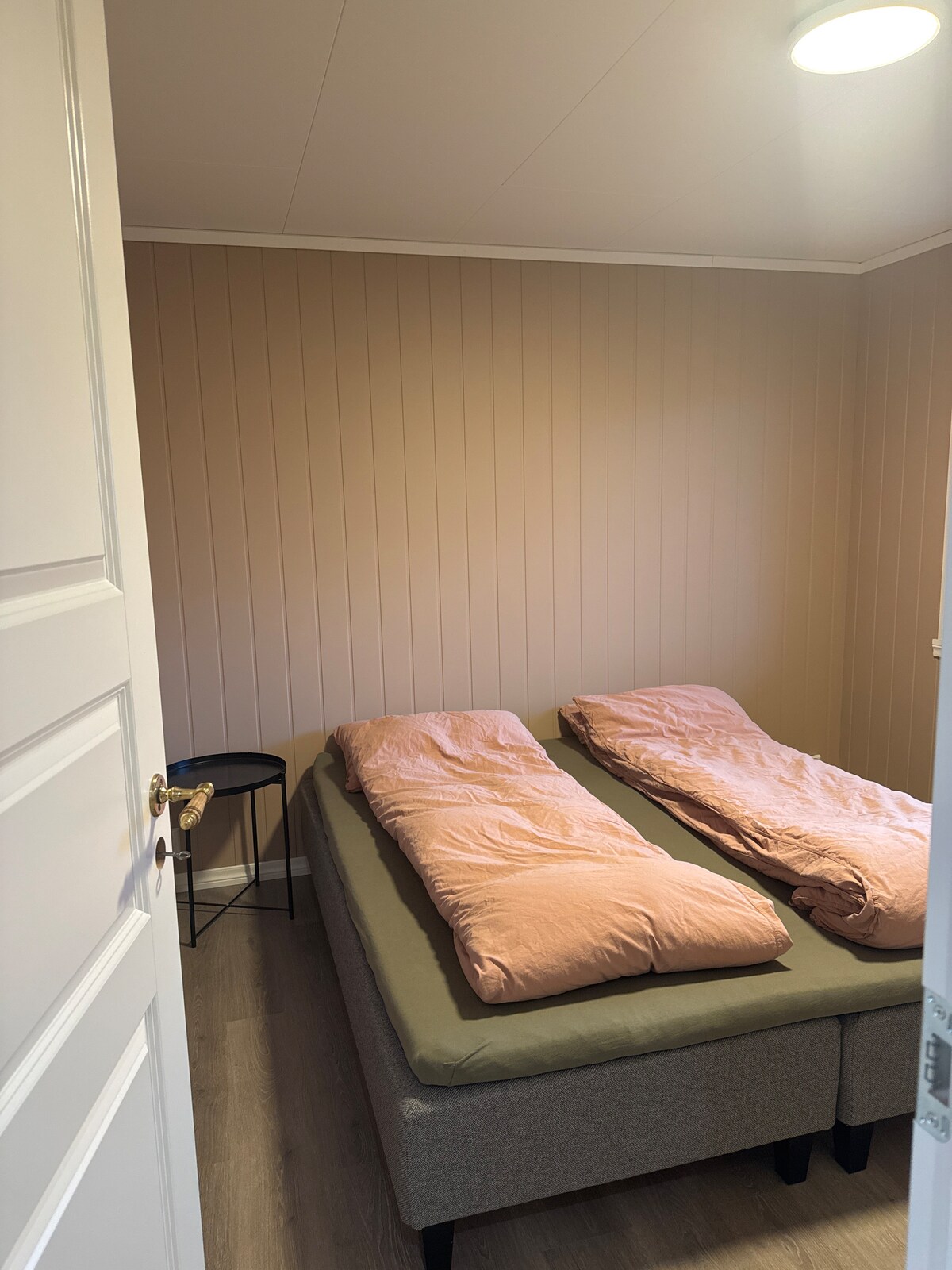 Jag äger en trädgårdslägenhet i huset där jag bor, 50-60 kvm. Huset ligger i ett byggområde ca. 9 km från Voss centrum. Det finns bra tillgång med buss. Gång- och cykelväg från stadens centrum, och vidare till Skjervsfossen och Granvin. Lägenheten har egen ingång, kök med all nödvändig utrustning. Badrum, med dusch, toalett, tvättmaskin och värmekablar i golvet. Sovrum för 2, sängens bredd är 150. Bäddsoffa i vardagsrummet. Sänglinne och handdukar ingår. Parkeringsplats vid ingången. TV, endast Netflix