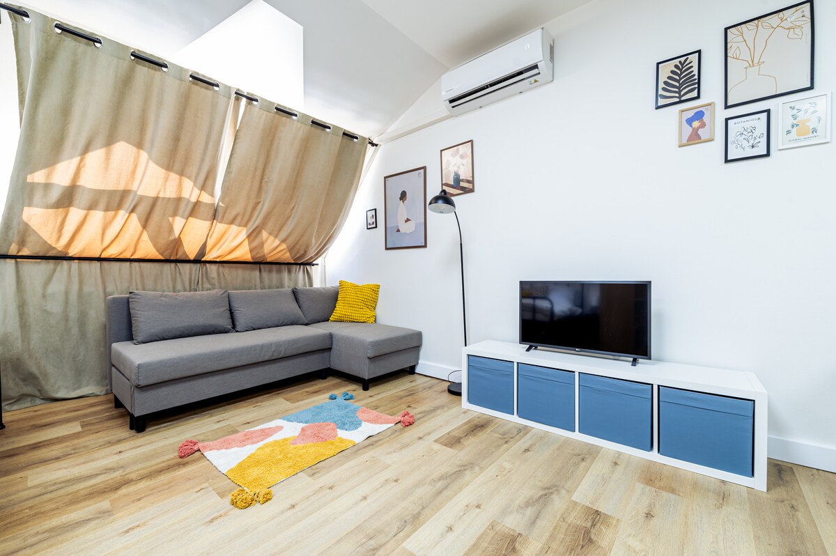 Modern och fullt utrustad 2-rumslägenhet i hjärtat av staden. Njut av en bekväm vistelse i vår eleganta och mysiga lägenhet med 2 sovrum, belägen mitt i stadens centrum.Lägenheten är idealisk för familjer, par, individer - den erbjuder allt du behöver för en bekymmersfri och trevlig vistelse.
