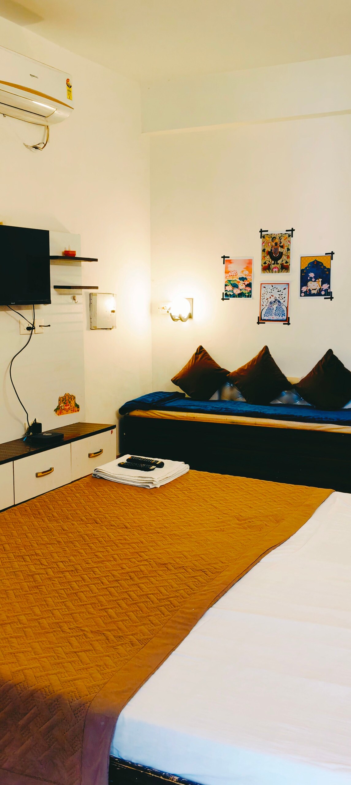 Bo på Bhakti Vanam, bara 1,5 km från den heliga Prem Mandir i Vrindavan. Njut av en rymlig studio med luftkonditionering, höghastighets Wi-Fi, egen ingång och en mysig balkong. Perfekt för två gäster, med en extrasäng tillgänglig vid behov. Bekvämt till tempel och kollektivtrafik, och scootyuthyrning kan ordnas. Fullständig tillgång till ett välutrustat kök och rent tvättrum. Perfekt för familjer eller ensamresenärer som söker komfort och frid på en andlig plats.