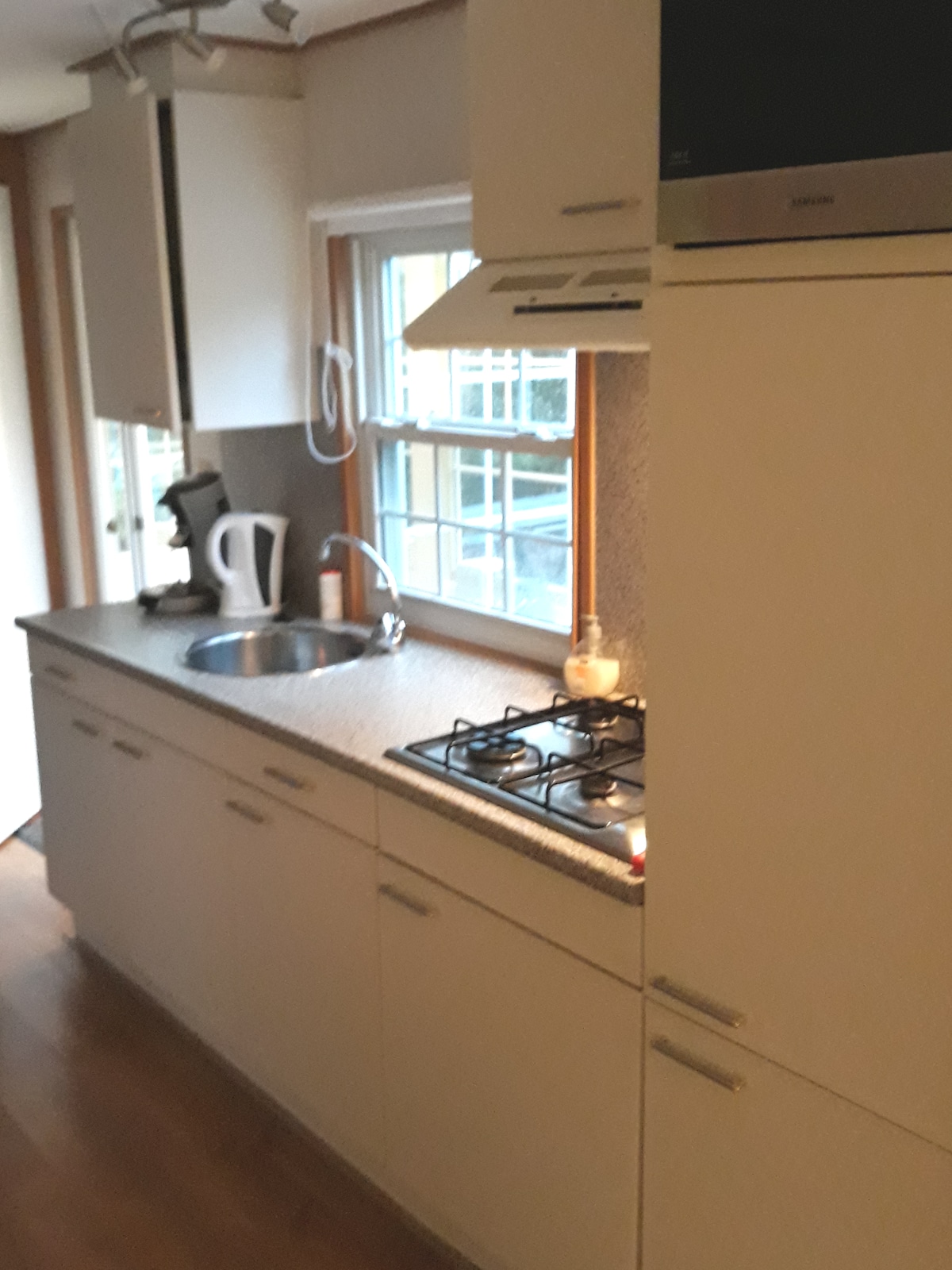 I det gamla centrum av karakteristiska och unika Broek i Waterland i en lada ombyggd 2017 bakom gården. Helt privat boende med tillgång (självincheckning). Delad nivå med privat trädgård. På nedervåningen (24 m2) finns vardagsrummet med soffa, minikök, matplats och separat badrum och toalett. På loftet finns sovrummet med dubbelsäng, gott om garderobsutrymme, hängande och liggande. WiFi finns tillgängligt. Det finns två cyklar (Veloretti) att hyra, 10 per cykel och dag.