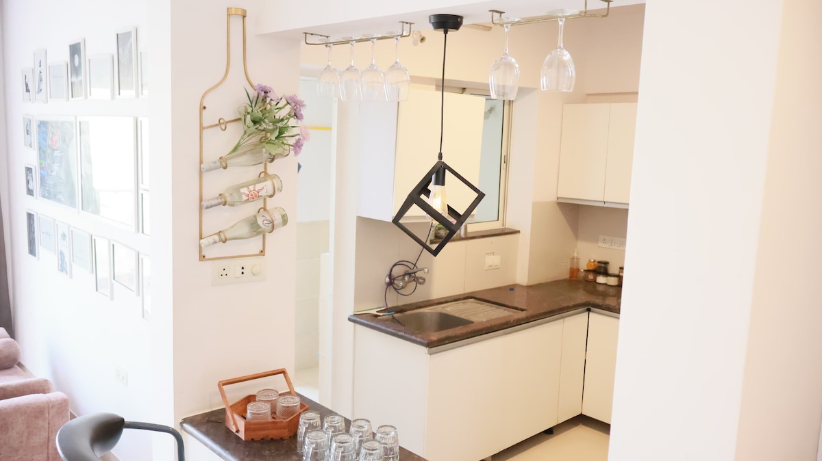 Detta boende är lyxigt 1 BHK parvänligt erbjuder modern estetik och fullt laddad lägenhet, vilket gör det till en av de bästa i Kharadi, Pune. Beläget bara 5 minuters promenad från EON IT Park, Barclays, Citi, British Petroleum, och med Magarpatta och Pune International Airpot bara 7 km bort, är det på ett utmärkt ställe nära kaféer, restauranger, butiker, kollektivtrafik och privat transport i Kharadi. Vardagsrummet har en mysig soffa och Apple TV med OTP-kanaler, barenhet perfekt för avkoppling efter en dags utforskning