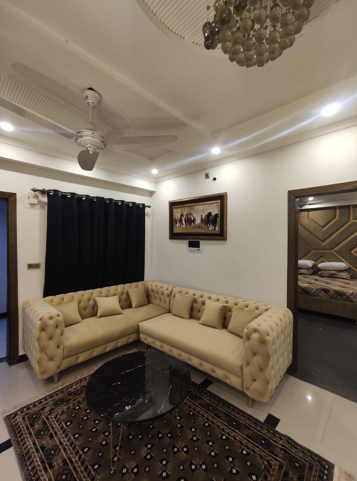 När du går in i denna lägenhet kommer din första reaktion att vara att det är en vacker, elegant och ren lägenhet. Familjemiljö finns tillgänglig. - 5 minuter från EARTH HYPERMARKET 🌎 -15 minuter från flygplatsen 🛫 -2 minuter från (Tandoori restaurang, chai que) - 2 minuter från Haneef medicinska sjukhus 🏥 - källaren till byggnaden har Mart - Hjälpare finns också tillgänglig som kommer att serva och städa ditt rum, leverera allt du behöver, ta dina kläder till tvätt etc.