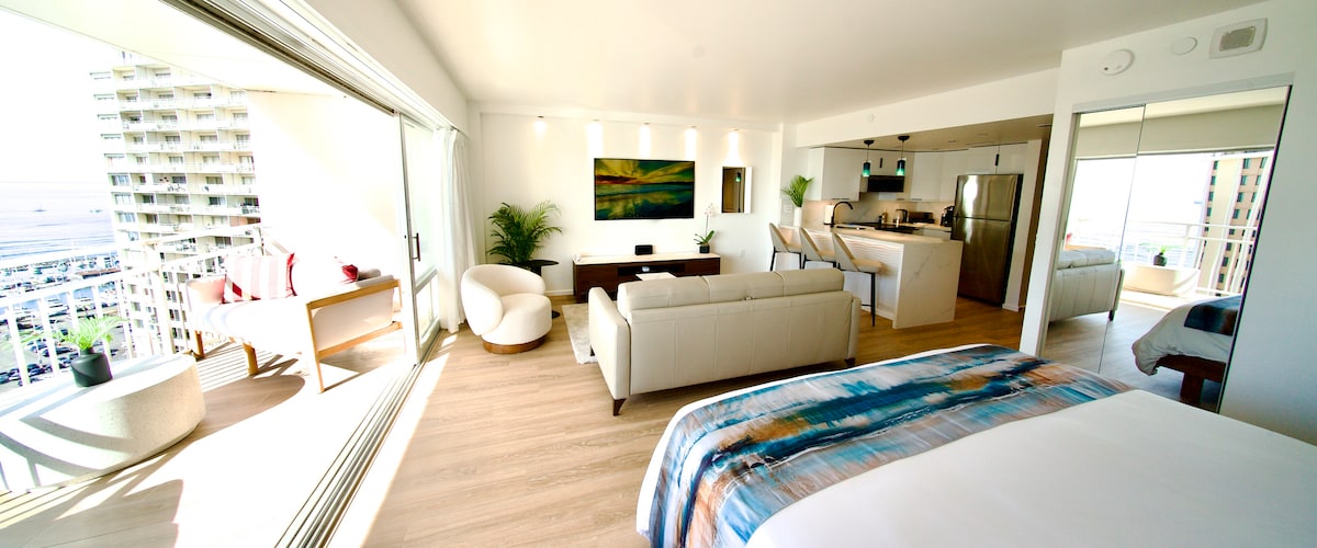 Fantastisk studio vid havet – perfekt för romantiska resor eller smekmånader. Välkommen till din fridfulla hawaiiska reträtt, där fantastisk utsikt över Stilla havet välkomnar dig varje morgon. Denna helt nya, exklusiva, fullt renoverade högvåningsstudio (ursprungligen juridiskt betraktad som en enrumslägenhet) ligger framför den berömda Kahanamoku Beach, en av de bästa i USA. Det erbjuder det ultimata i lyxigt boende tillsammans med gratis parkering och säkerhet dygnet runt.