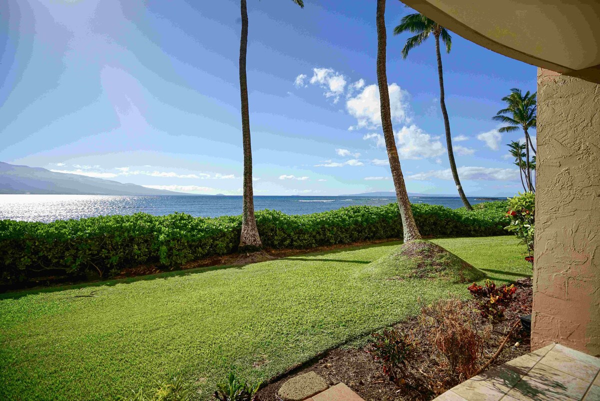 Ta en stund att varva ner och uppskatta den fantastiska utsikten från uteplatsen, där du kan se valar från nov-april och få en skymt av surfare som rider "Freight Train" under midsommar. Våga dig ut på en lugn promenad till Maalaea Harbor Shops och Maui Ocean Center, eller utforska med en bilresa till Lahaina (väst), Hana (öst) eller Wailea (södra spetsen). Njut av härliga bekvämligheter som uppvärmd pool, grillstation vid havet och loungeområde på gräsmattan. Betecknad parkering precis utanför.