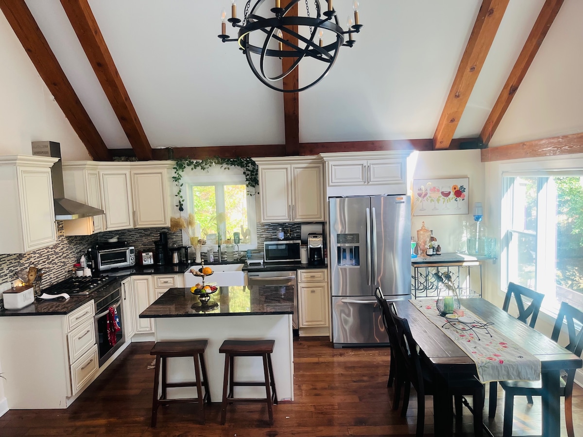 Vacker, ljus, rymlig King-svit med öppen spis, två badrum och egen separat ingång vid poolen. Vi är bara några minuter till stränder, båtliv, golf, vandring, cykling, yoga och vingårdar. Spela spel, grilla eller mys vid eldstaden med en bra bok eller film. Utrymmet är kreativt utformat med en nick till naturliga element och lyxig komfort. Sov ditt allra bästa på vår super deluxe king size-säng med ditt val av kuddar. Gratis kaffe/te/godbitar