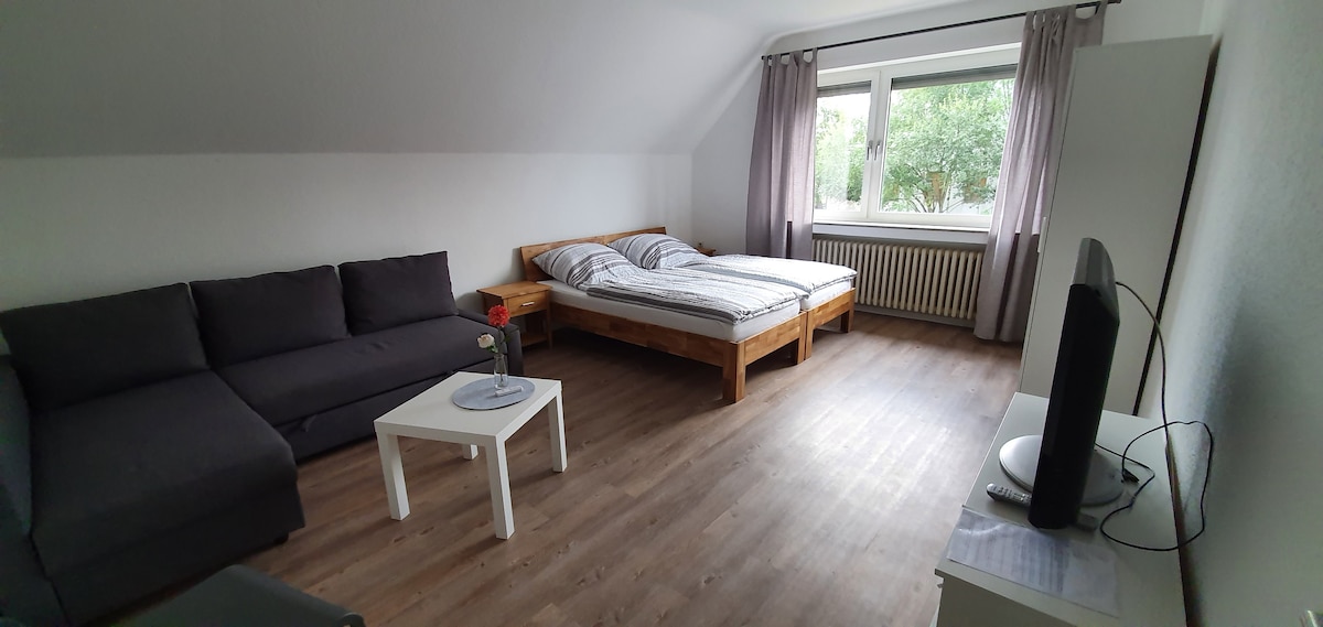 Boendet Välkommen till Nedre Rhen! Välkommen till Nettetal! Beläget i Hinsbeck distriktet, kommer du att känna sig som hemma med oss i en familjeatmosfär i ett lugnt bostadsområde. Omgivning: Bara några kilometer från den nederländska gränsen ligger Nettetal med Hinsbeck-distriktet. Hinsbeck och grannen Leuth gör Nettetal till en statligt erkänd semesterort. Det är hjärtat i Maas-Schwalm-Nette International Nature Park. Här finns ett typiskt nedre Rhenlandskap med 12 sjöar, 70 km cykling och 145 km vandringsleder. Den landskapstypiska, ursprungliga floran och faunan kan beundras i kärleksfullt underhållna naturskyddsanläggningar. Supermarket och bageri ligger inom gångavstånd. Motorväg 61 når du på ca 8 km. Kaldenkirchen tågstation ligger ca 7 km bort. Därifrån kan du nå Venlo direkt via den nederländska gränsen och även i den andra riktningen direkt till Düsseldorf. Ditt hem: Första våningen i vårt fristående hus är din personliga oas av välbefinnande under hela vistelsen. Sedan sommaren 2001 har vi varit glada att välkomna våra gäster, från barnfamiljen, via naturälskare till monteringsarbetaren, alla som flyttar till Nettetal och det omgivande området. Vår semesterlägenhet erbjuder på ca 60 m² utrymme för upp till 4 personer i 2 separata dubbelrum. Faciliteter: 2 vardagsrum, kök vardagsrum, badrum/dusch, kabel-TV, radio, Internet/W-LAN, mikrovågsugn, sängkläder och handdukar ingår, barnvänlig, rökfri lägenhet, låsbar cykelförvaring, trädgårdsanvändning, grill, stor gratis parkering mittemot huset; Barnfamiljer är lika välkomna gäster som ditt husdjur. Vi ber om kort information i förväg. Pris per person: från 28,00 € Priser från en vecka på begäran.