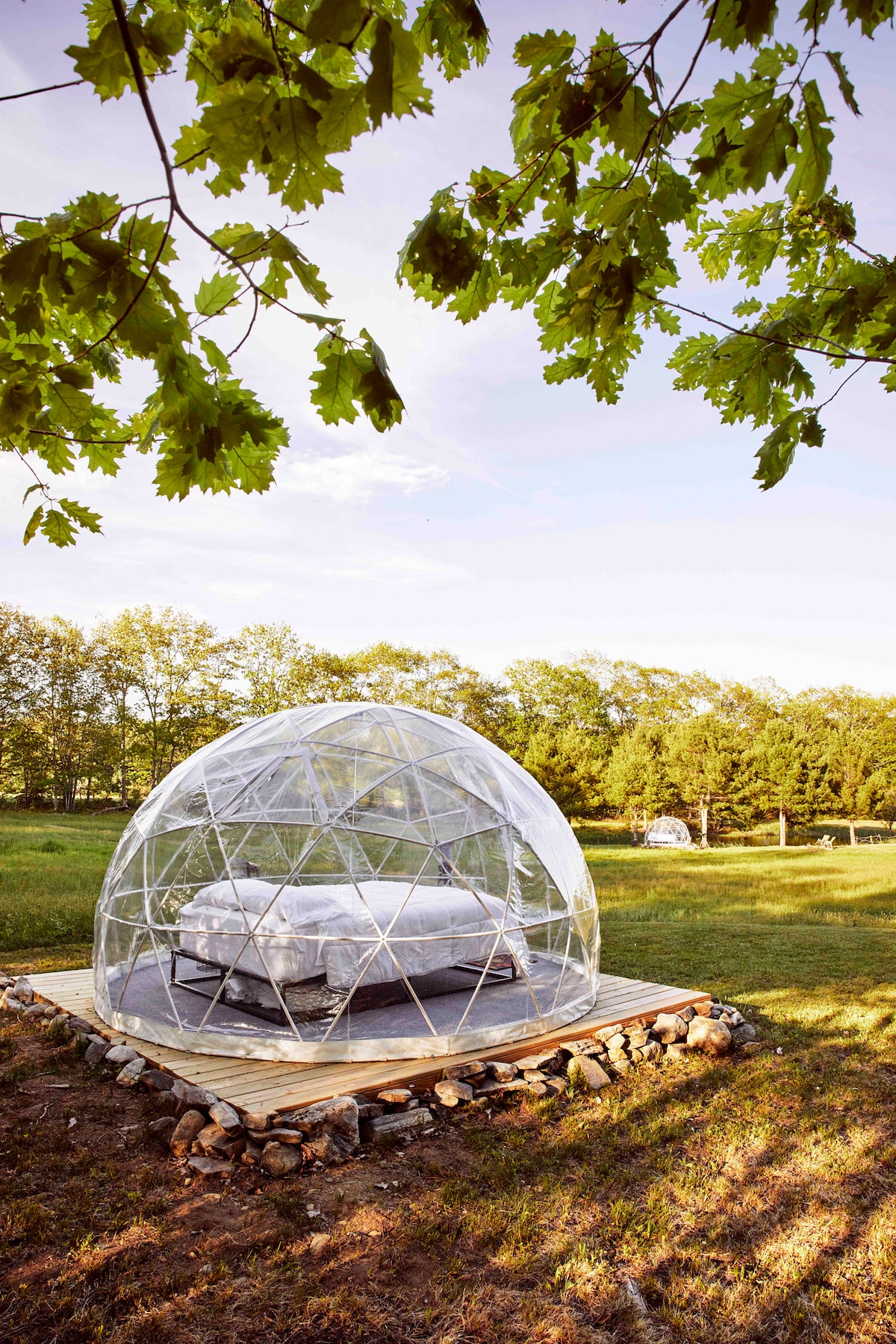 Beläget på en mysig liten kulle kommer du att höjas över alla andra kupoler, vilket ger dig en "kunglig" utsikt över landskapet! Med en tydlig bild av de vidsträckta fälten kommer du ofta att vara först med att upptäcka hjortfamiljen som besöker ComfyDome. Ditt hjärta kommer att fyllas med glädje vid synen av de nyfödda rådjuren som går genom gräset. Du kommer att vara omgiven av fantastisk naturlig skönhet på alla sidor och gott om öppet utrymme för att njuta av din plats bekvämt!