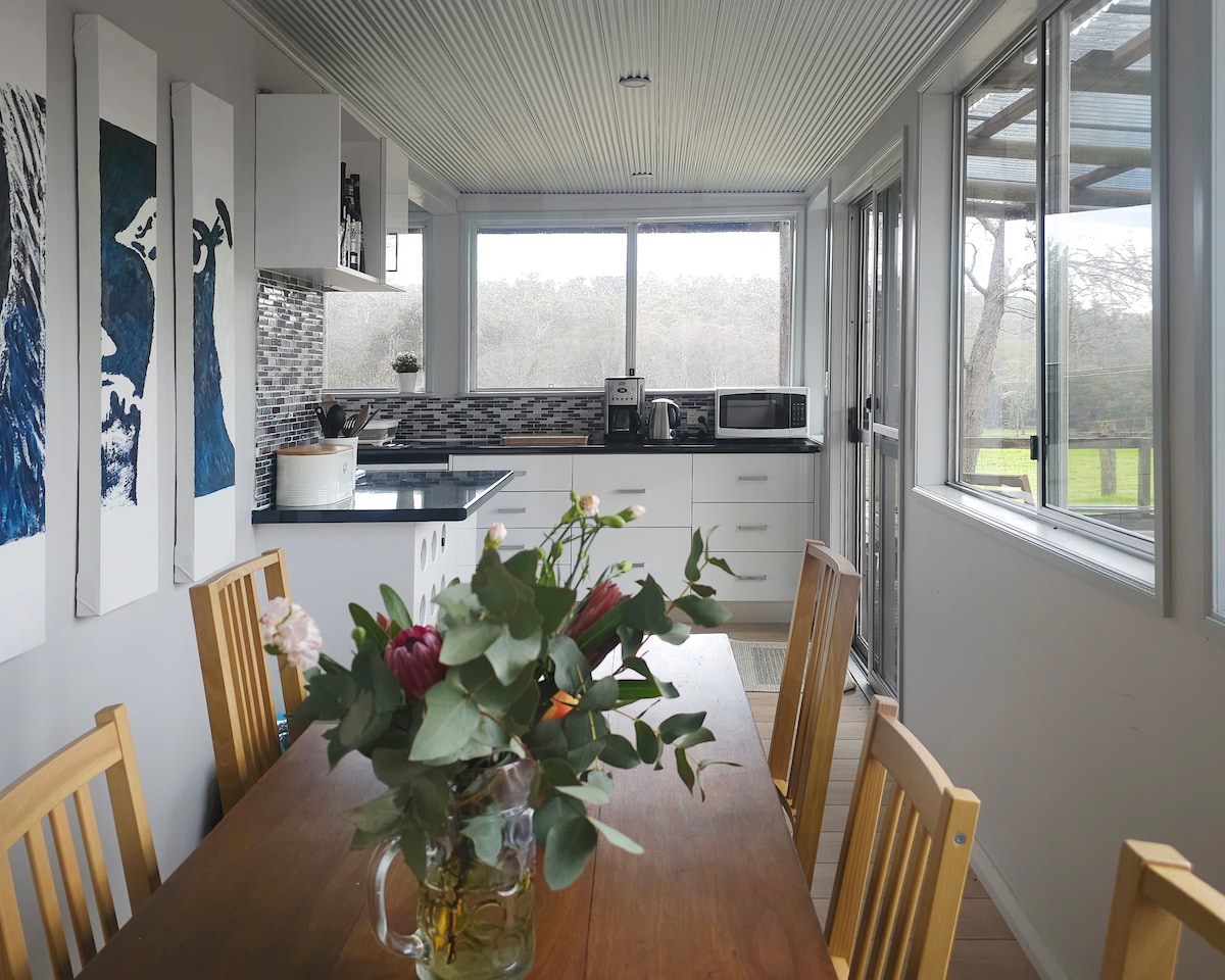Inbäddat mitt i hjärtat av den gigantiska pinnskogen, och ligger på en 40 tunnland stor del av en fungerande mejeri- och nötköttsfarm, kommer du att få fördjupa dig i den lantliga livsstilen, men till förmån för alla varelsernas bekvämligheter. Studion är en del av ett traditionellt gårdsskjul, med väggarna klädda i antikt corrugate järn för den autentiska känslan. Det finns plats för två att gosa och njuta av den mysiga atmosfären i denna nyinredda industriella chica studiolägenhet.