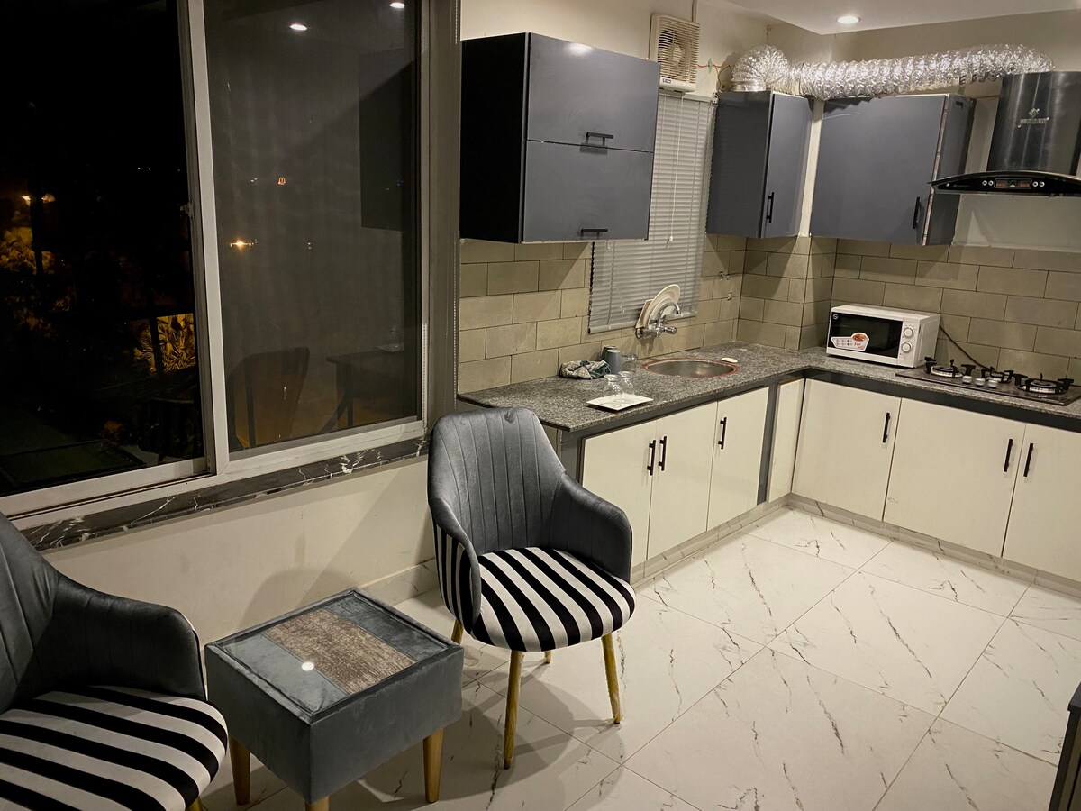 Vi erbjuder en elegant enrumslägenhet i DHA fas 4, Lahore, med enkel tillgång till lokala attraktioner. Lägenheten har en mysig dubbelsäng, ett fullt utrustat kök och ett rymligt vardagsrum. Njut av en egen terrass. Ytterligare bekvämligheter inkluderar Wi-Fi, luftkonditionering, mikrovågsugn ugn och en tvättmaskin. Gäster måste uppvisa giltigt ID vid ankomst. Observera att högljudda fester, rökning inomhus och oregistrerade gäster inte är tillåtna. Ogifta par kommer inte att ta emot.