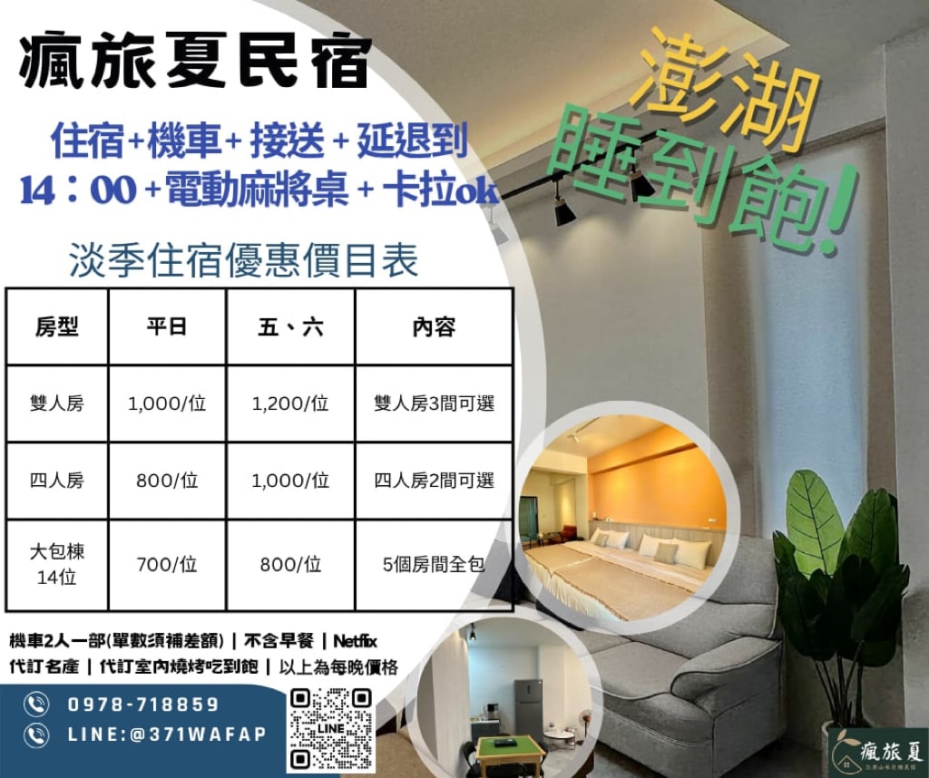 Penghu - Leknong B&B - Helt hus 4 rum 525- (för 12 personer, 2 rum för 2 personer, 2 rum för 4 personer, inklusive extrasängar för upp till 20 personer)