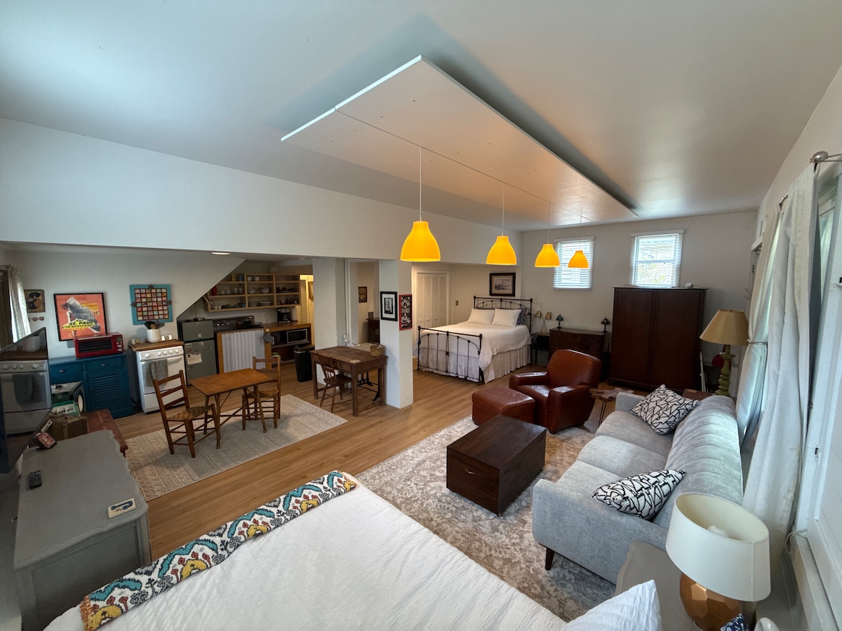 Denna bekväma Mid-City-lägenhet ligger inom gångavstånd till New Orleans mest ikoniska grannskapsrestauranger, vattenhål och Street Car Line för tillgång till French Qtr., City Park & Cemeteries. Lägenheten har ett sovrum med en Queen-säng, Vardagsrum med bäddsoffa, badrum, fullt utrustat kök, diskmaskin, tvättmaskin/torktumlare, luftkonditionering, kaffebryggare, WiFi och 2TV med Roku. (Också luftmadrass vid behov) Om du är på väg till centrum eller utforskar Mid-City, är denna lägenhet ett lugnt och bekvämt ställe att ladda om.