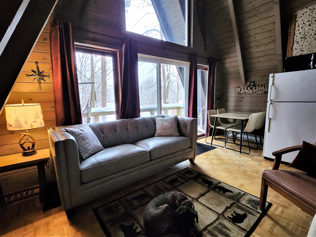 Välkommen till Oven Mountain Chalets!! Beläget inom några minuter från Gore Mountain, Town of North Creek och Scenic Hiking Trails, pittoreska städer att utforska och handla. Bekvämt sovplatser fyra (1 Queen och 2 Twin); Skärmad på balkong; AC-enhet; Fullt utrustat/utrustat kök för att laga dina favoritmåltider! Massor av tillgängliga bekvämligheter. Rymligt badrum med djupt badkar/dusch som ger lyxiga handdukar/sängkläder. Stuga belägen på 10 tunnland av naturens gåva av vilda djur ljud, vyer, stjärnglitter nätter vid eldstad.