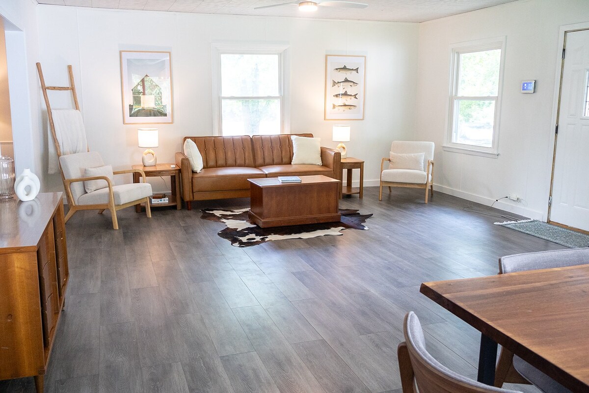 Njut av detta charmiga boende i hjärtat av centrala Sawyer. Våga gå ut till fots, och du är 2 minuters promenad till Greenbush, Infusco, Section House och mer. Hoppa in i bilen och var på Warren Dunes eller Journeyman Distillery på under 10 minuter. Centralt beläget för att ha nära till allt som Harbor Country har att erbjuda. Inuti hittar du alla bekvämligheter hemifrån, inklusive ett fullt utrustat kök, plysch queen-sängar, samt en 55" Smart TV med många appar redo att gå på Apple TV. Grundläggande kök och badrum tillhandahålls.