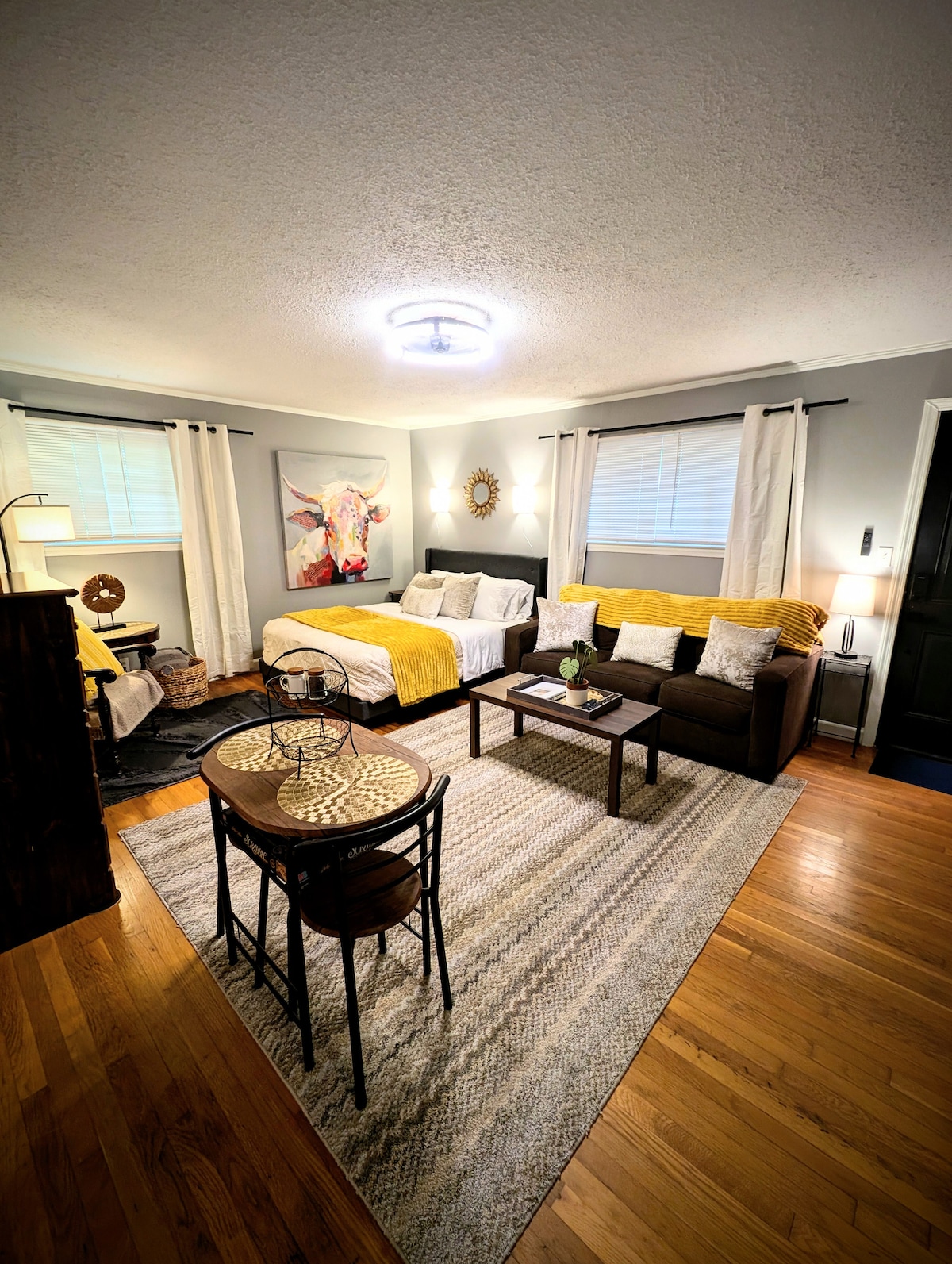 Njut av en privat studio med en bekväm dubbelsäng med mjuka sängkläder, Temperpedic kudde och mörkläggningsgardiner. Ni har eget badrum och egen ingång med dygnet runt-knappsats. Njut av en arbetsyta med snabbt WiFi, mikro, kylskåp och gratis snacks. Vattnet filtreras direkt från kranen 👍 Tvärs över gatan från ETSU. En härlig promenad till centrala Johnson City via de trädkantade gatorna i Historic Tree Streets.