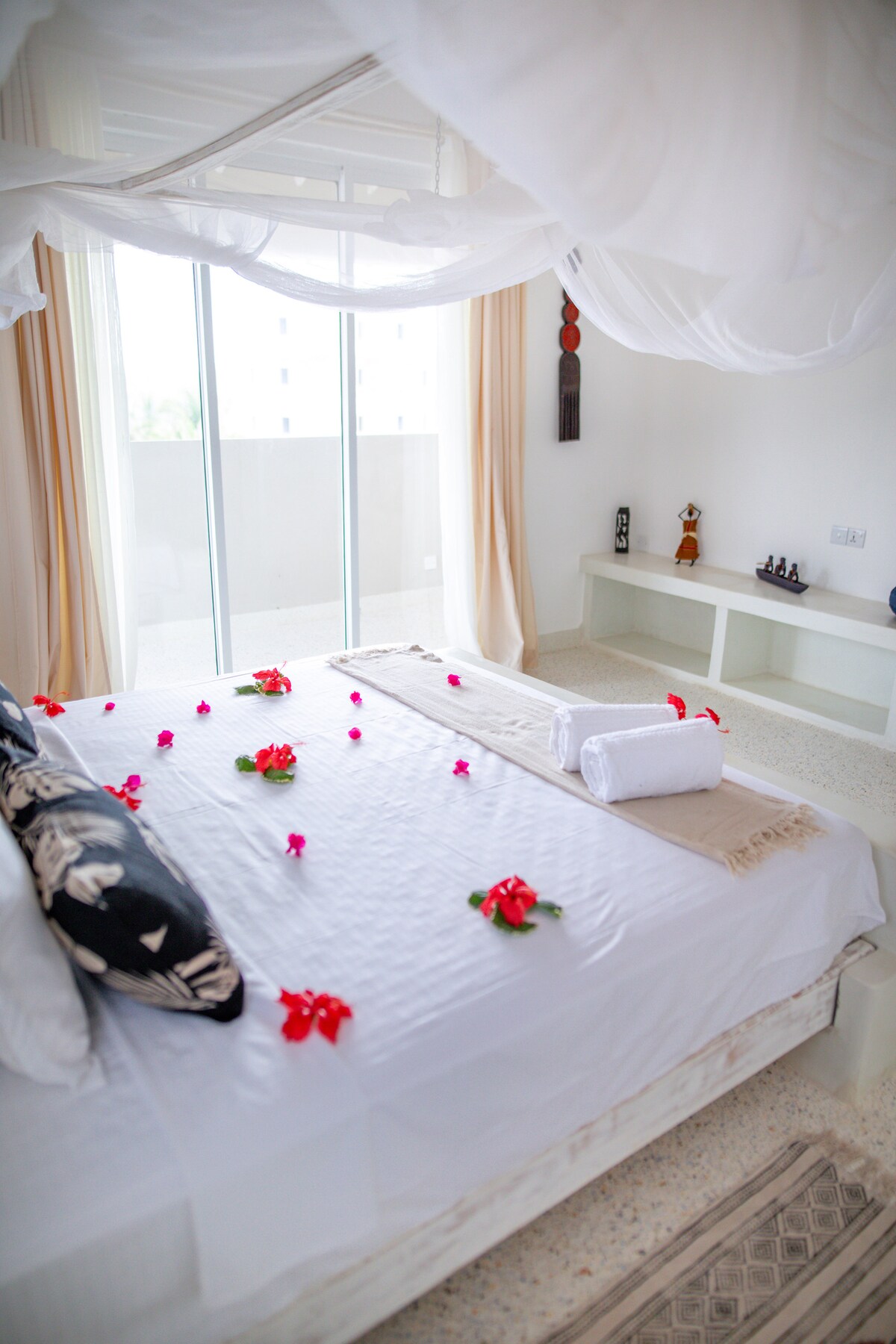 Upplev modern lyx i vår villa med 4 sovrum och en pool i hjärtat, inbäddad bland frodiga kokospalmer. Watamus vita sandstrand ligger bara några minuter bort. Koppla av och skapa minnen med familj, vänner och nära och kära i vår utomhuslayout. Vår fantastiska personal har en kock och rumsvärd för att se till att din vistelse är perfekt. Vi är bara en snabb tuktukresa till restauranger, shopping, snorkling, yoga, kiteboarding och andra sevärdheter. Skicka ett meddelande till oss om du har några frågor eller vill boka idag!