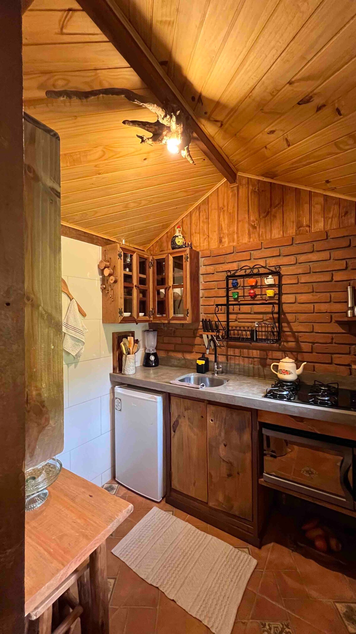 Rustik stil chalet, mycket mysig, 75m², belägen mindre än 100 meter från Alameda Gastronômica, i hjärtat av Maringá-MG, i ett gated community, med säkerhet och en parkeringsplats. Nära barer, restauranger, butiker, apotek, marknad, bageri, etc. Allt kan göras till fots, din bil kan stanna fortfarande i ägarlägenheten hela tiden. Visconde de Maua-regionen är full av vattenfall, stigar, turer och äventyr. Perfekt för att koppla bort från vardagliga bekymmer.