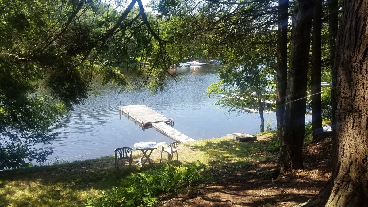 → Mysig Chalet 5 minuters promenad från vackra Lake Wallenpaupack → 4 åtkomstpunkter till sjön; inklusive ett strandområde och båtlansering → Tillgång till gemensam pool, lekplats och gym. → Frukost/lunchkafé vid infarten på samhället → Fullt utrustat kök. Minigrill & Crock pot tillgänglig. → Rekommenderad restaurang-/vandringsledslista ingår → Netflix och distansarbete på loft Tvättmaskin och torktumlare på → plats Uthyrning av kajak (3): 25 USD fast avgift + ansvarsbefrielse Hyr brygga: 35 $ per dag