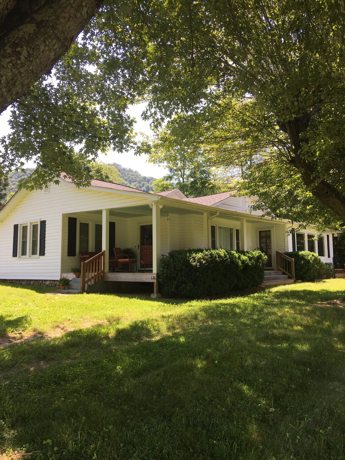 Lev det enkla livet i detta fridfulla, centralt belägna boende. På huvudvägen i Hazelwood Village kan du promenera till frukost på Beach Mountain Diner, Smokey Mountain Coffee Roasters eller Farm to Cake Bakery. Shoppa dig trött i söta, lokalt ägda butiker, inklusive Blue Ridge Books och Hazelwood Soap Company. För fler närliggande äventyr, gå eller kör en mil till centrala Waynesville! Om du vill koppla av kan du stanna hemma och njuta av det eleganta, bekväma huset och den helt inhägnade trädgården med dina valpar.