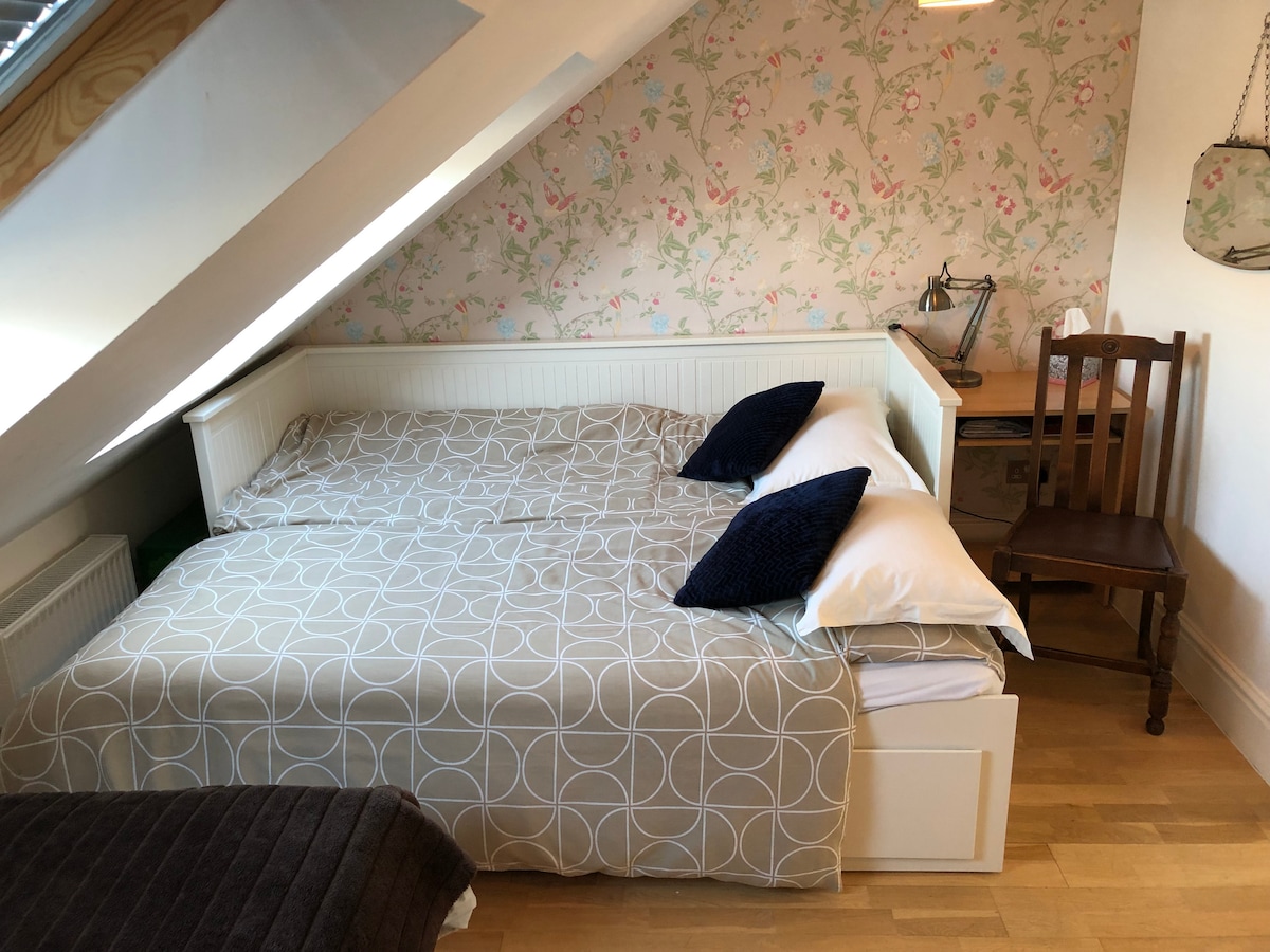 Dubbelrum och tvillingsängar i Hove. Privat badrum