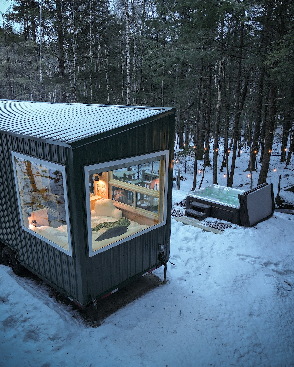 Denna charmiga och eleganta lilla stuga kommer att transportera dig in i naturen. Känslan av att campa utomhus med bekvämligheter inomhus. En del av den helt nya campingplatsen, Trailside Stays som är bekvämt belägen längs skid- och mountainbikelederna vid Green Woodlands. Detta lilla hus har 1 högkvalitativ queen-size säng, sängkläder, kokvrå, stora bildfönster, badrum med dusch, värme och luftkonditionering, uteservering och grill topp eldstad. Hittar du inte dina datum tillgängliga? Kolla de andra stugorna!