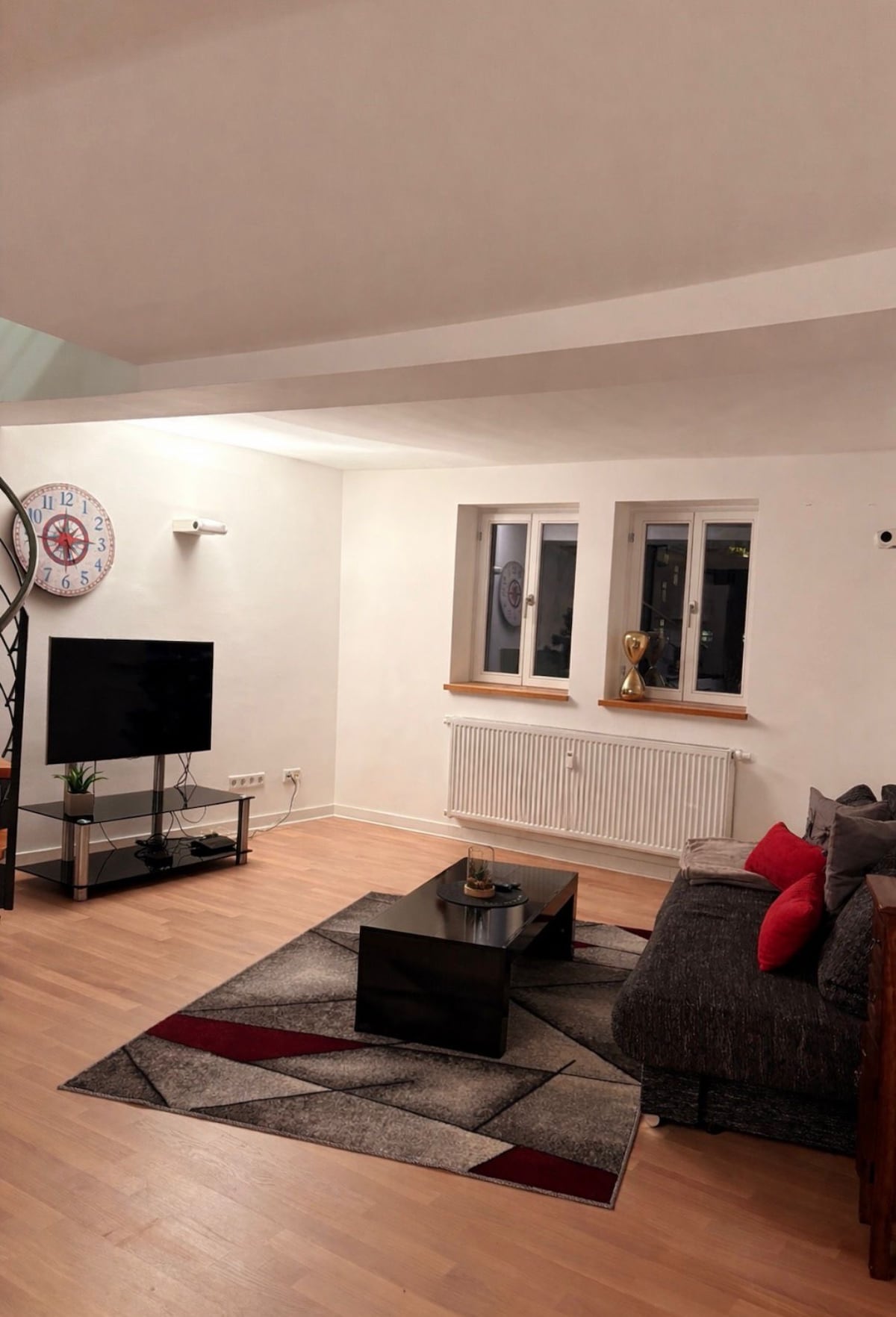 Entspanne dich mit der ganzen Familie oder Freunden in diesem 216 qm großen, direkt am Park liegenden Loft. Auf dem Balkon kann man grillen und schaut dabei ins Grüne. Das riesen Wohnzimmer bietet Platz zum Tanzen oder einfach nur gemütlich am Ofen zu sitzen, Tischtennis zu spielen oder zu kickern. Im Bad gibt es eine geschlossene Badewanne mit Musik und eine Waschmaschine. Die Küche ist komplett eingerichtet. Vier Schlafzimmer gibt es mit je zwei Betten 😊 Außerdem Bücher und Spiele.