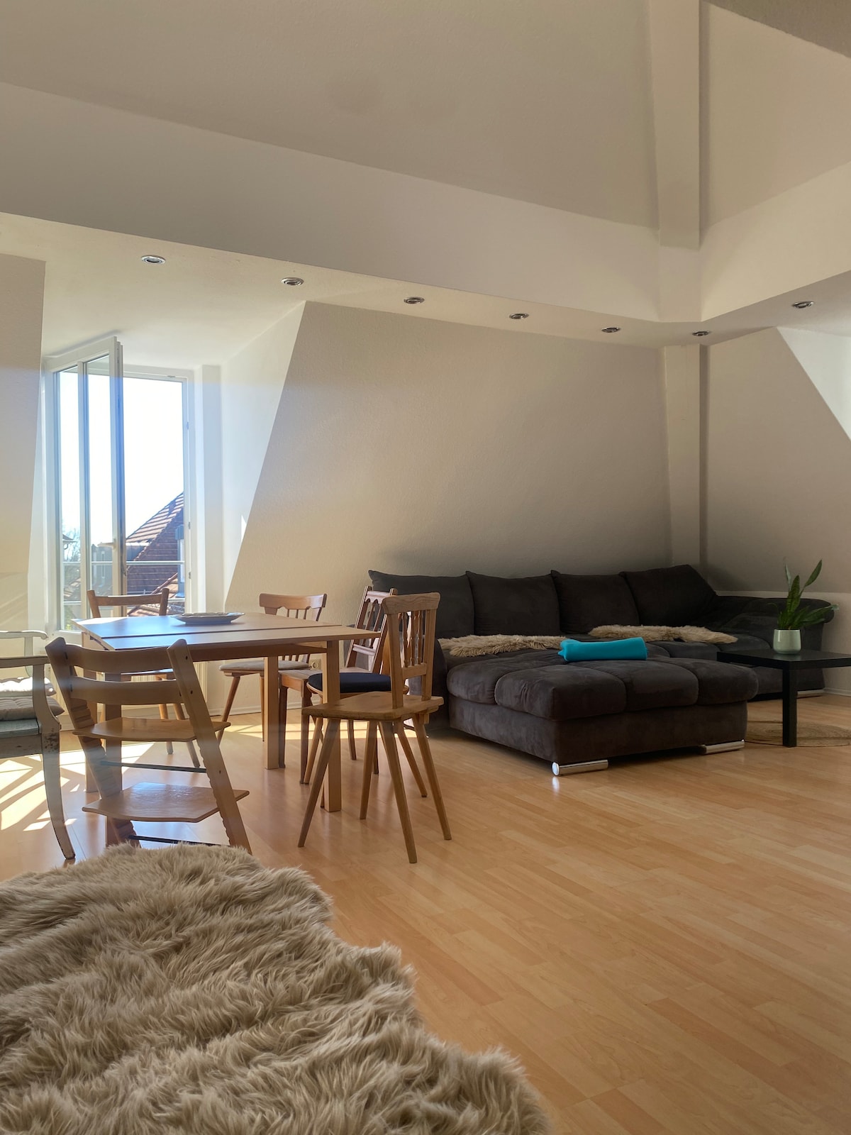 Den charmiga, ljusöversvämmade lägenheten ligger på vinden i ett nyrenoverat lägenhetshus i ett centralt läge i Weingarten. Stadens centrum med sin vackra basilika och olika shoppingmöjligheter, liksom FH ligger bara 10 minuters promenad bort. Boendet är lämpligt för både yrkesverksamma (gärna även för längre vistelser), liksom för dem som vill utforska området med sina många attraktioner härifrån.