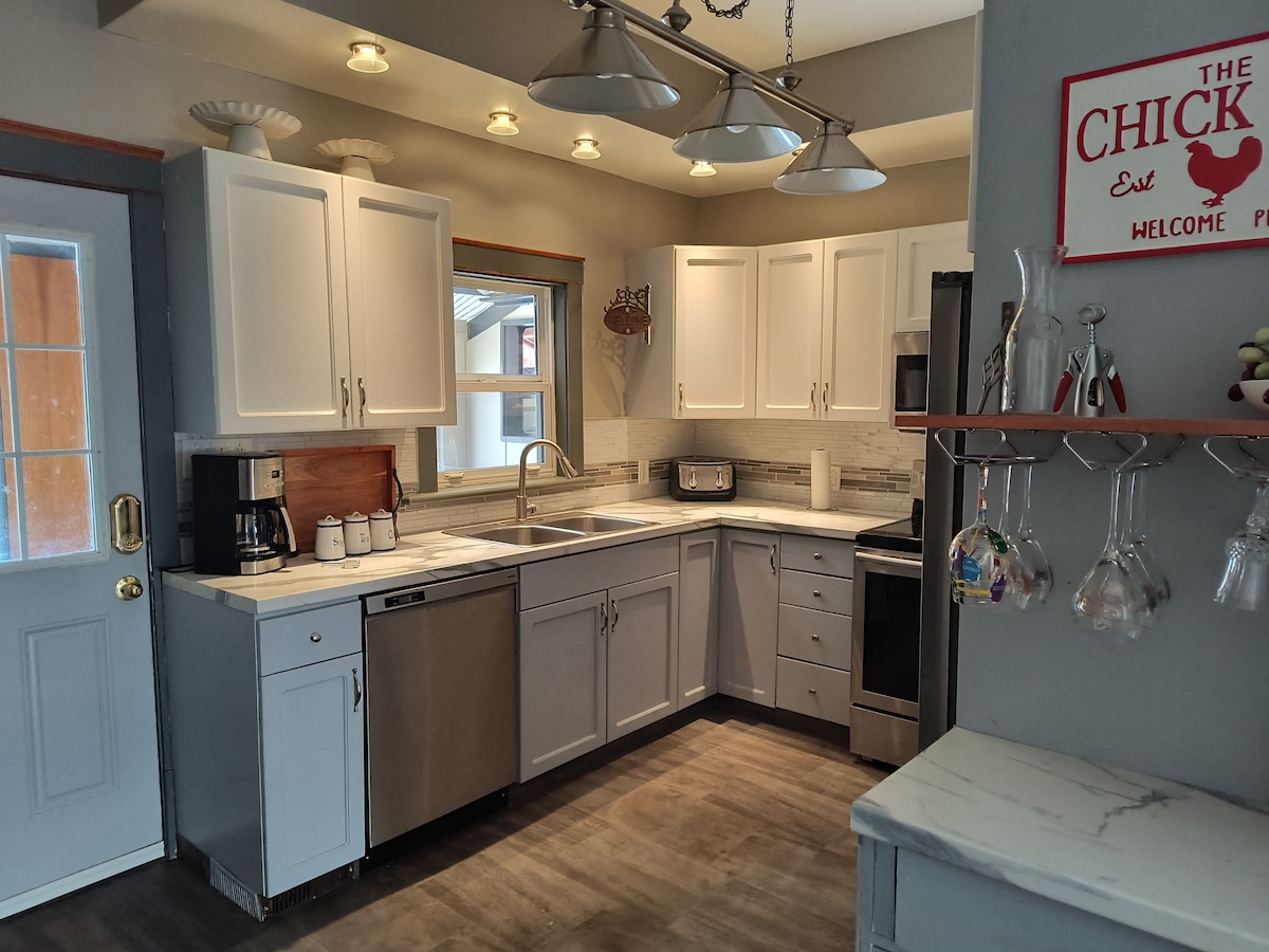 Vårt ställe är designat för familjer. Vi gav gården en campingkänsla med ett stort tvåvåningsdäck, blå-tandhögtalare surroundljud, två sittplatser, en bubbelpool, två eldstäder (propan och trä), zipline till en landningsplattform och en rutschkana från plattformen till en sandlåda för barn. Trädgården är mycket rymlig med massor av utrymme för lek. Insidan moderniserades och inkluderar wifi och smart-TV i varje rum med en stor lädersektionssoffa för enkelt besök.
