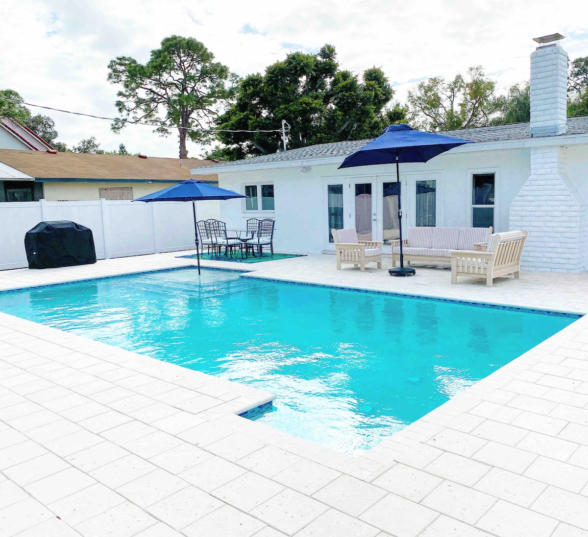 Njut av ett enkelt boende i detta uppdaterade tropiska hem! Din privata avskärmade lanai är perfekt för sömlös inomhus/utomhus avkoppling, med en uppvärmd pool och täckt mat/lounge område med en 58" utomhus-TV! Inredningen i hemmet är ljus och öppen med glad kustinredning och gott om utrymme att breda ut sig. Vi tillhandahåller allt du behöver med ett välfyllt kök, gasolgrill, spelrum, strandutrustning, handdukar, elbilsladdare! I ett lugnt grannskap med snabb tillgång till AMI stränder IMG, parker och leder!