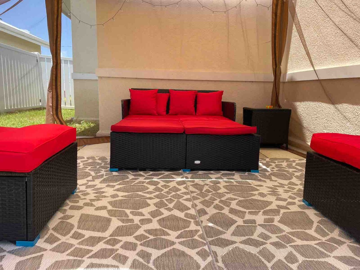 Lugn, ren, stuga med tillgång till privat strand vid havet. Semesterort bekvämligheter, gratis frukost, gym, pool med poolleksaker, flottörer, handdukar och poolstolar. Helt ny stuga med lyxiga apparater, luftkonditionering, gratis WiFi, kabel och stereoanläggning, stereoanläggning även i taket i båda sovrummen. Bakgårdsgrill och tält med loungesoffor, trädgårdsstolar och bord. Solbelysning på bakgården, cyklar, fiskespön, kortspel, fotboll och arkad basketspel. Njut!