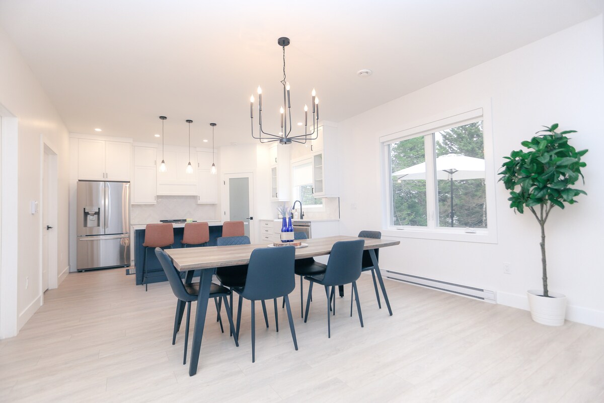 En modern designad, nybyggd lägenhet med fantastiskt läge som ligger några minuters promenad till allt i Wolfville. Lägenheten med 1 sovrum består av en queen size-säng, ett fullt utrustat kök och badrum, sittplatser för 4 i vardagsrummet, ett matbord, barstolar och en liten uteplats. Lägenheten är helt fristående från vårt hus och ovanför garaget. Det finns en smart-TV och WiFi samt luftkonditionering och parkering på plats för ett fordon. Detta är en husdjurs- och rökfri lägenhet.