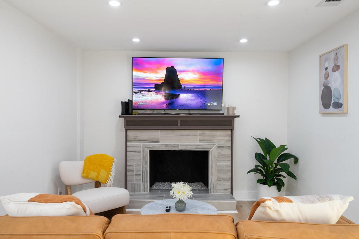 Välkommen till din perfekta resa! Vårt charmiga 2bd/2ba-hus erbjuder en mysig och elegant tillflyktsort för familjer eller par. Njut av det rymliga vardagsrummet, fullt utrustat kök och bekväma sovrum med premium sängkläder. Koppla av på den privata uteplatsen eller ta en kort promenad till närliggande attraktioner. Med moderna bekvämligheter som höghastighets Wi-Fi, en smart-TV, PS5 och en tvättmaskin/torktumlare, har du allt du behöver för en minnesvärd vistelse. Boka nu och upplev komfort och bekvämlighet i ett perfekt paket!