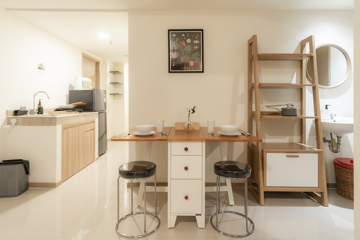 Kompakt, bekväm och kärleksfullt designad lägenhet med 2 sovrum på Chadstone Pollux Cikarang, integrerad med Pollux Mall med topphyresgäster inklusive XXI-biografer och olika restauranger. Beläget i hjärtat av Cikarang, nära tol utgångsområde KM31. Perfekt läge för affärer eller fritid, vistelse med familj eller vänner. Njut av vårt gratis wifi, utomhuspool, gym, basketplaner.