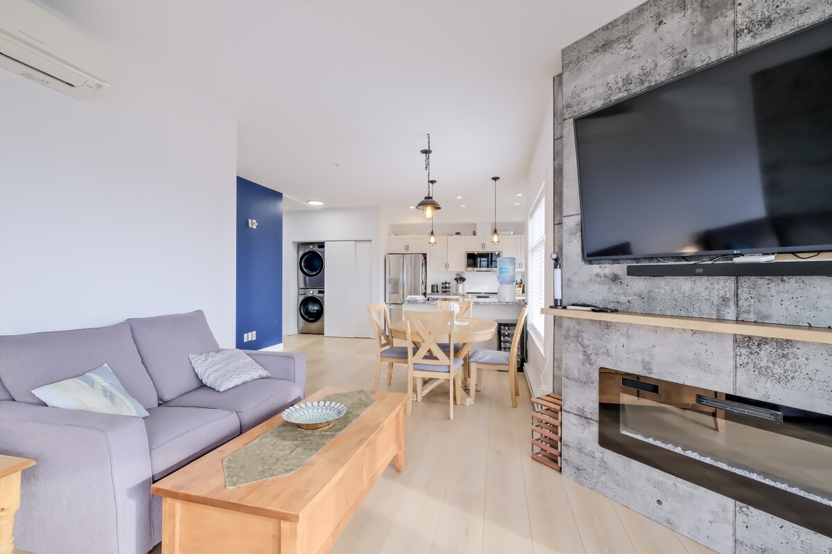 Ingen städavgift! Njut av denna ljusa lägenhet med 2 sovrum/2 badrum i hjärtat av Kelowna. Sovplats för 6 med en king size-säng, queen size-säng och queen size-bäddsoffa. Laga mat i ett fullt utrustat kök, koppla av vid gasspisen, streama Netflix på den stora TV:n eller smutta på morgonkaffe på balkongen. Ett mycket gångvänligt område med närliggande parker, stränder, vingårdar, bryggerier, butiker och restauranger. Gratis självincheckning, säker parkering, tvättstuga i sviten, centralvärme/luft och höghastighets-WiFi. 2 pooler med bubbelpooler, en öppen året runt!