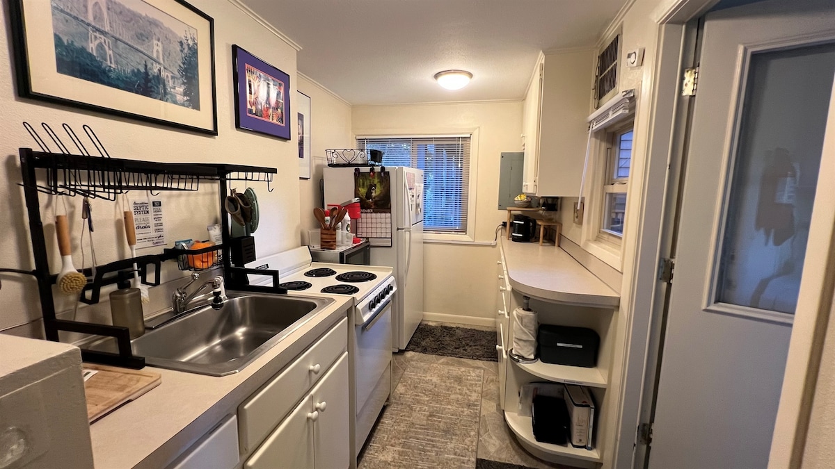 Välkommen till Riverfront Cottage, en fridfull tillflyktsort längs Willamette River inom en skyddad naturlig livsmiljö rik på djurliv och säsongens skönhet. Detta privata pensionat byggdes ursprungligen 1944 och har uppdaterats med eftertanke, och blandar vintagekaraktär med modern komfort. Njut av lugna morgnar, utsikt över floden och en lugn miljö formad av blå hägrar, sångfåglar och flodliv. En perfekt plats för att sakta ner och varva ner bara några minuter från staden.