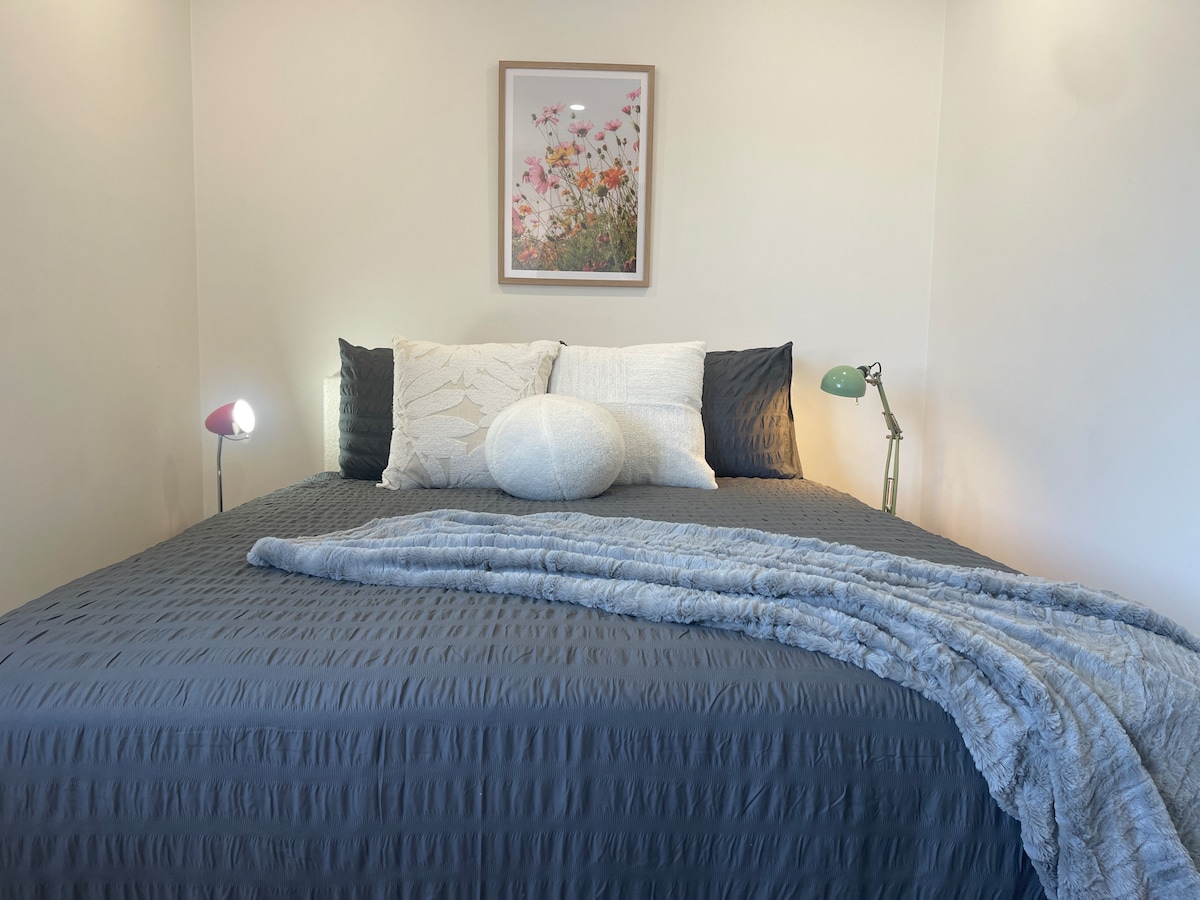 Silver Gypsy Flat ligger intill vårt hem. Nyckelpost, säkra stålfönster och dörrskärmar, a/c, bord, stolar, skafferi, induktionshäll, mini-ugn, smörgåsmaskin, stekpanna, vattenkokare, brödrost, pod kaffebryggare, juicepress, glasugn, mikrovågsugn, riskokare, kyl/frys, porslin, bestick och glas. Bäddsoffa, ny 50-tums tv, lampor, queensize-säng, skrivbord, schäslong, walk-in badrock och eget badrum, kuddar, täcken och sängkläder. Privat trädgård, grill, uteplatsbord, stolar, brolly och gratis parkering offroad. Nyckellås för sena ankomster.