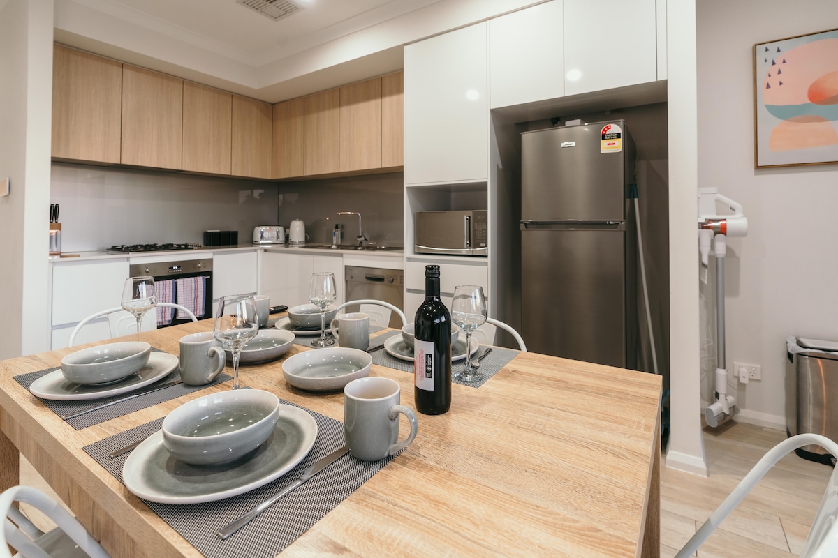 Modern lägenhet nära CBD Arbetsvänlig