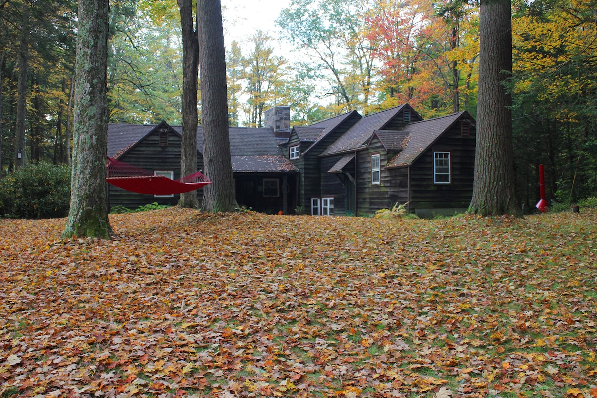 Konstnärlig vintage stuga med en privat stuga i ett lugnt område i Berkshire. Bakgården öppnar till skog med stigar i närheten. Njut av eldstäder och badtunna på vintern, vattenfall och utomhusdusch på sommaren. På övervåningen finns ett sovrum med badrum och badkar; på nedervåningen finns ett retrokök, vardagsrum och ett komplett badrum med dusch. Stugan erbjuder bekväma sittplatser, bondgårdsbord och storskärm-TV. Höghastighetsinternet, Prime och Spectrum TV.