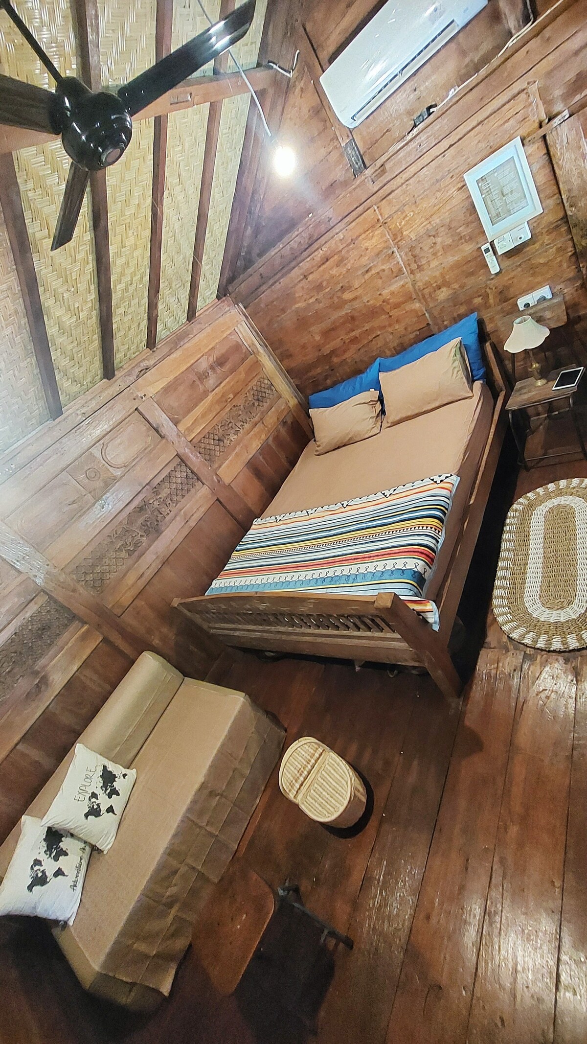 Detta fristad med två sovrum ligger inbäddat i skuggan av mangoträd i västra Sumbawa och är en plats dit seriösa surfare kommer för att vila ut och leva ett vackert liv mellan sessionerna. Huset är byggt med själ – handlagd sten, fint lövträ, polerad betong och trägolv samt utomhusduschar som gör att det känns som en ritual att skölja av sig efter surfingen. Vakna, kliv ut på altanen och låt bergsutsikten göra resten.