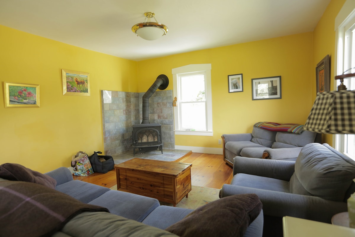 Fly till vår historiska och kärleksfullt renoverade skolbyggnad på en 250 tunnland stor, verifierad regenerativ gård, där utsikten över Green Mountain möter modern komfort. Koppla av i din privata bubbelpool och bastu efter att ha utforskat gårdsstigar, och somna sedan till de mjuka ljuden av får som betar på betesmarkerna nedanför. Detta är Vermont på sitt mest autentiska sätt – arbetsliv på gården med all lyx. Elfordonsladdare av nivå 2, tvättmaskin/torktumlare i boendet och luftkonditionering utan kanaler för sommarkomfort.