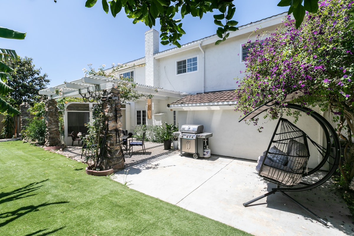 Vila & koppla av i detta gnistrande, rymliga och mysiga hem hemifrån för hela familjen! Trevligt, familjevänligt grannskap, bekvämt beläget till många shoppingtorg, mataffärer, restauranger och stränder! 10-15 minuters bilresa från stranden 25-30 minuter från Disneyland/Knotts Berry Farm 3 minuter från ett shoppingtorg 8 minuter från Whole Foods 15-20 minuter från John Wayne Airport 15-20 minuter från Long Beach Airport Små hundar är tillåtna mot en extra husdjursavgift på $ 80,00.