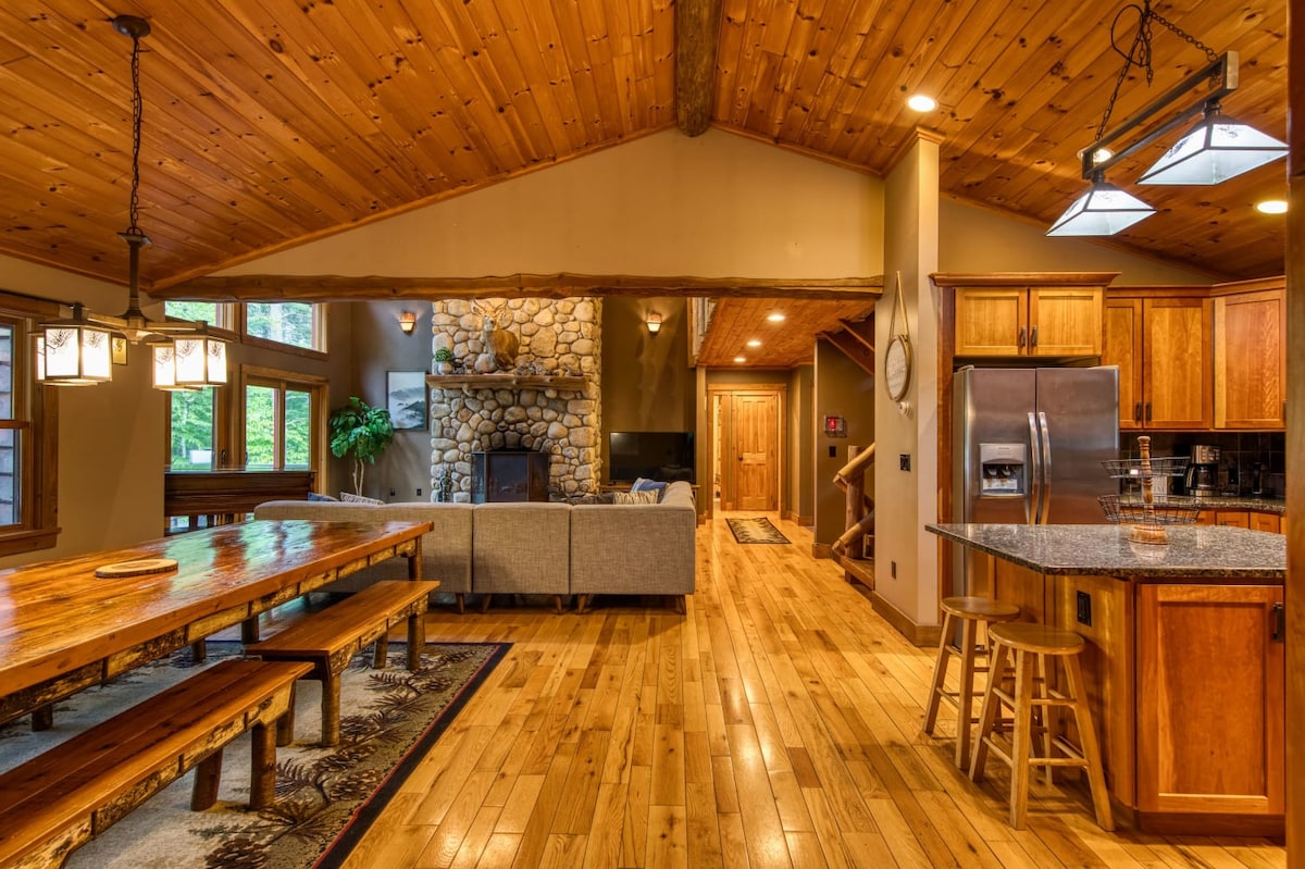 Fastigheten ligger i ett avskilt skogsområde, bara en mile från Whiteface Mountain och den berömda AuSable River. Boendet erbjuder gäster 3500 kvadratfot med en traditionell Adirondack-stil, med många rustika element inkorporerade i en modern design. Dessa inkluderar funktioner som en öppen planlösning med 30 fots katedralstak i vardagsrummet och golvvärme, vedeldad öppen spis, granitbänkskivor, trägolv och timmerräcken.