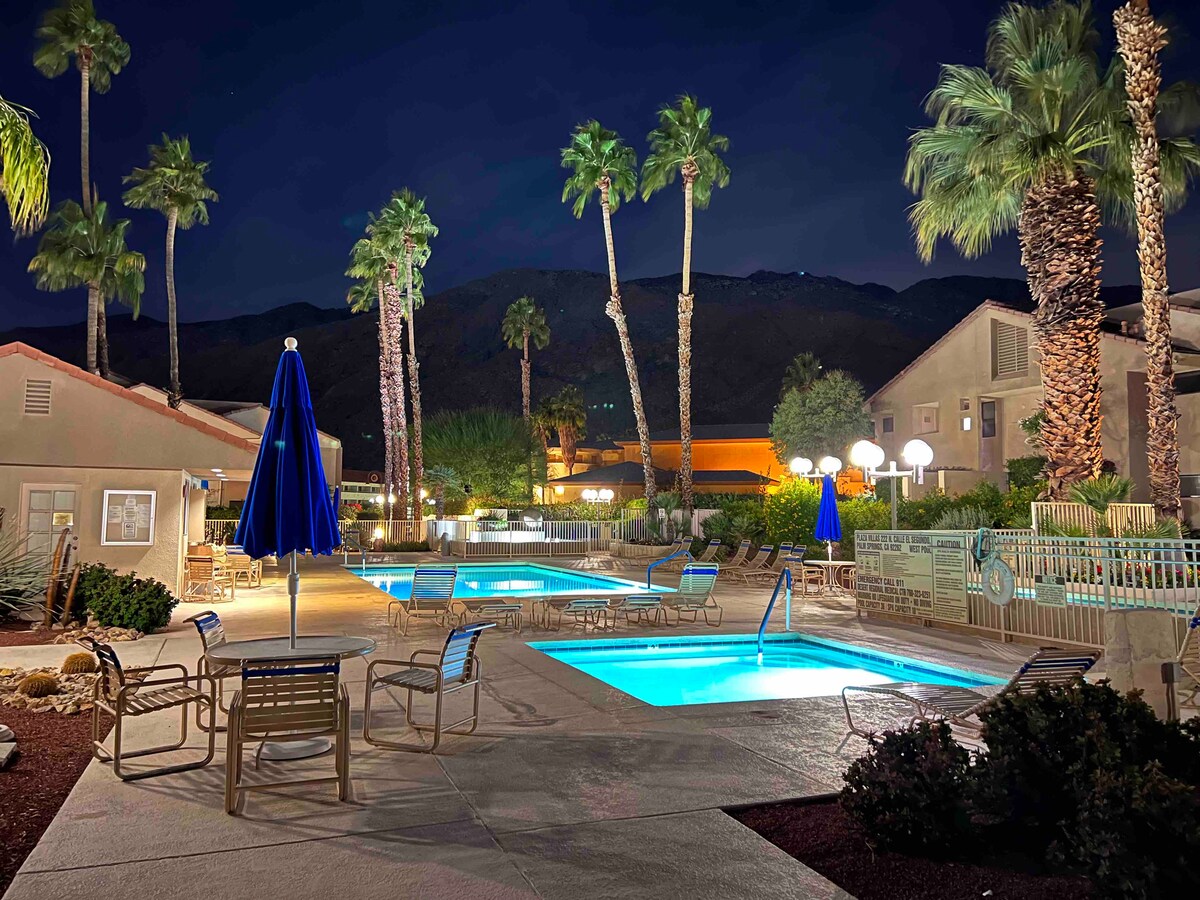 Retro Palm Springs Condo | Pool, utsikt och avskildhet