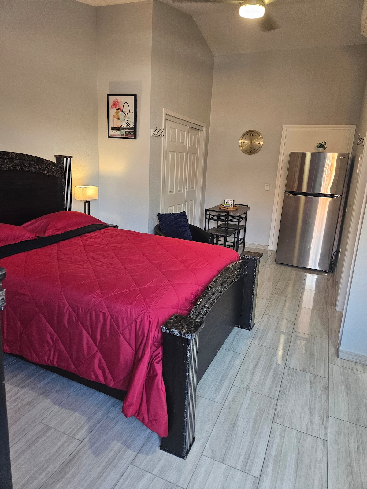 Detta bedårande boende erbjuder en fantastisk och fantastisk vistelse för gästerna. Rummet har en mycket bekväm och elegant Queen-säng. Det har ett utrustat kök och ett privat badrum för en uppfriskande dusch. Håll kontakten med WiFi och TV med Netflix, You Tube, njut av dessa bekvämligheter (be om en lista). Oavsett om du utforskar den livliga staden eller provar lyckan på kasinon är vår studio den perfekta basen för ditt äventyr i Las Vegas.