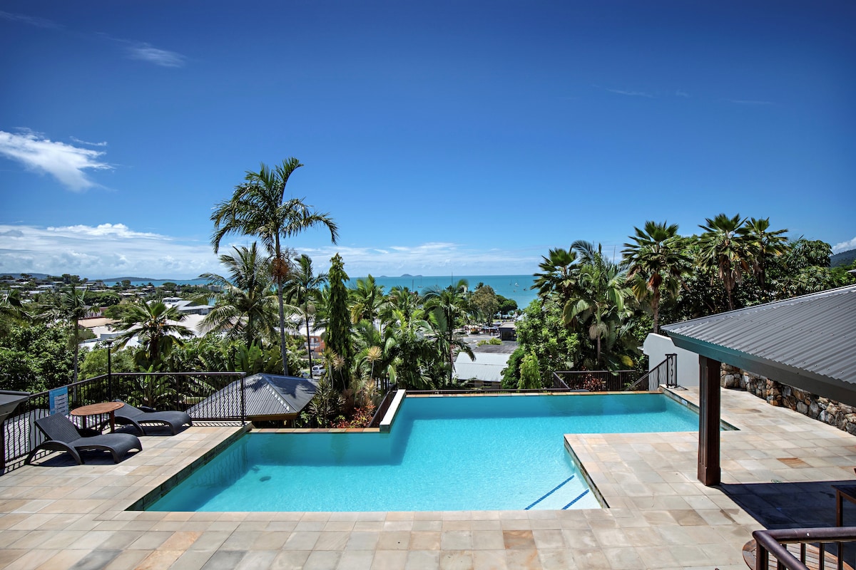 ★Helt fristående 2 sovrum 2 badrum ★Snygg modern inredning i hela % ❤{smart ★ 500 m promenad till Main Street Airlie ★ 180 graders utsikt över Coral Sea and Whitsunday Island ★ 20 m infinity edge pool + 15m simbassäng och spa ★Grillplats ★Gratis wifi "Wow wow wow. Lägenheten var helt fantastisk. Mycket väl underhållet och fläckfritt boende, med några härliga detaljer organiserade för vår vistelse" HELT inga skolbokningar